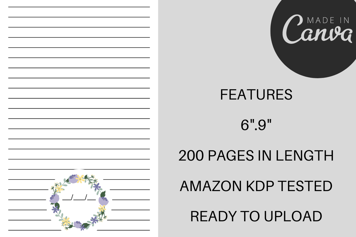 With this interior, you can quickly and easily upload a high-quality, professional-looking lined flower notebook or journal for KDP.