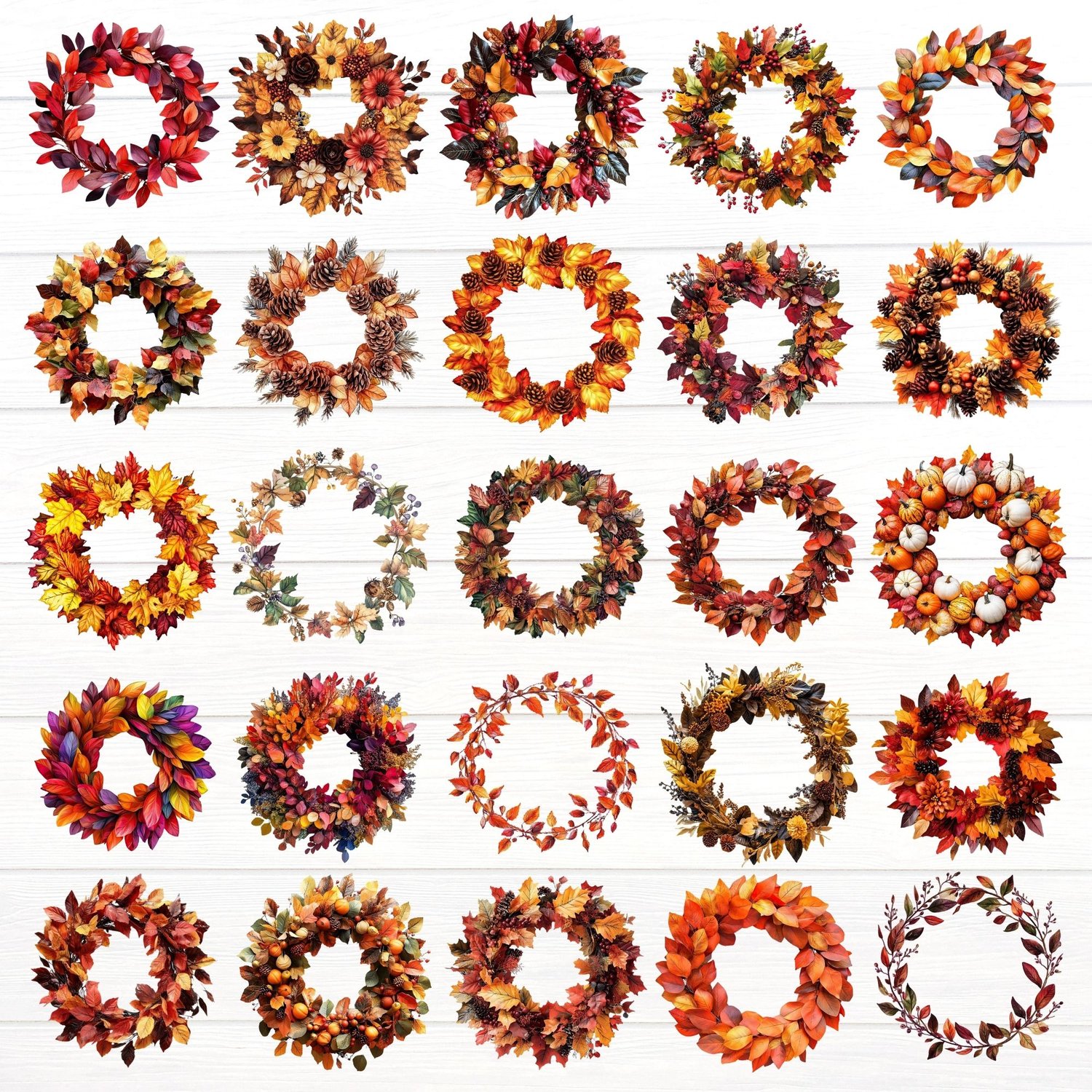 These pretty autumn wreaths are perfect for creating DIY home decor, Thanksgiving invitations, or fall wall art.