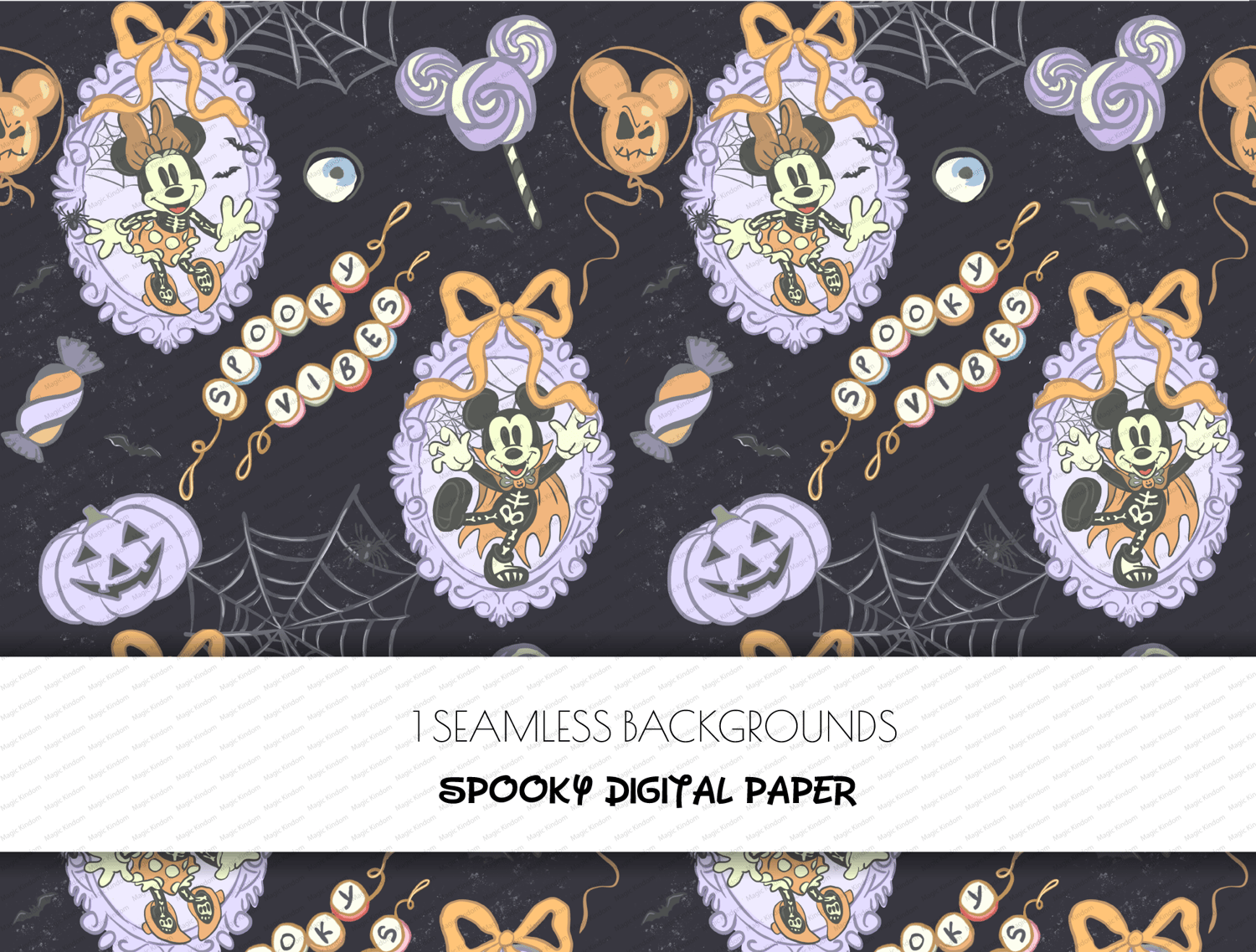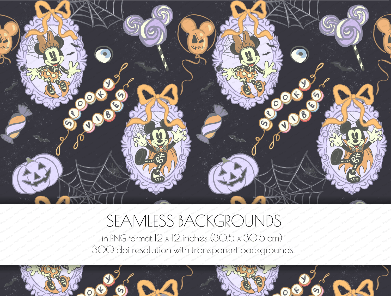 1 Spooky mickey, nightmare on main street Seamlessbackground PNG format 12 x 12 inches (30.5 x 30.5 cm) 300 dpi resolution .