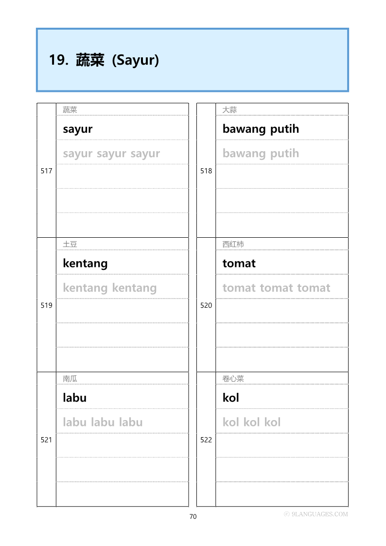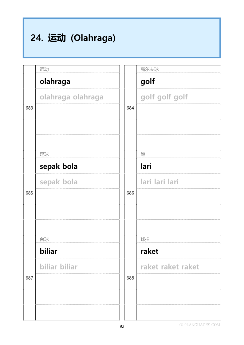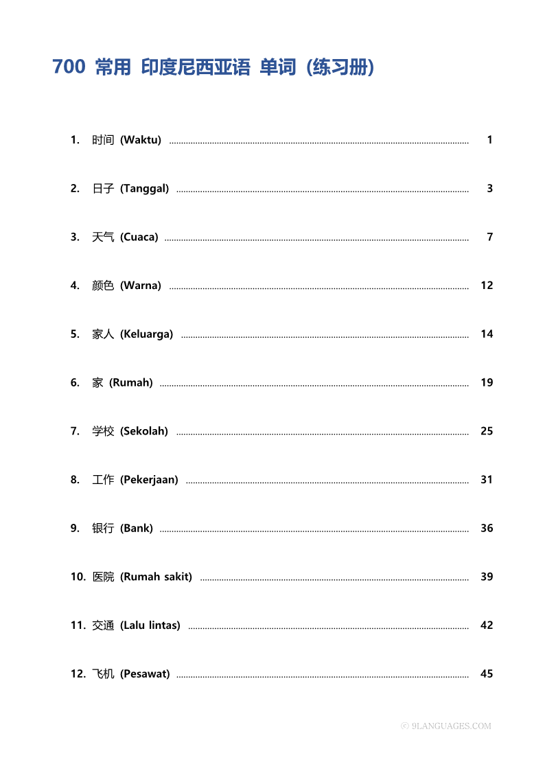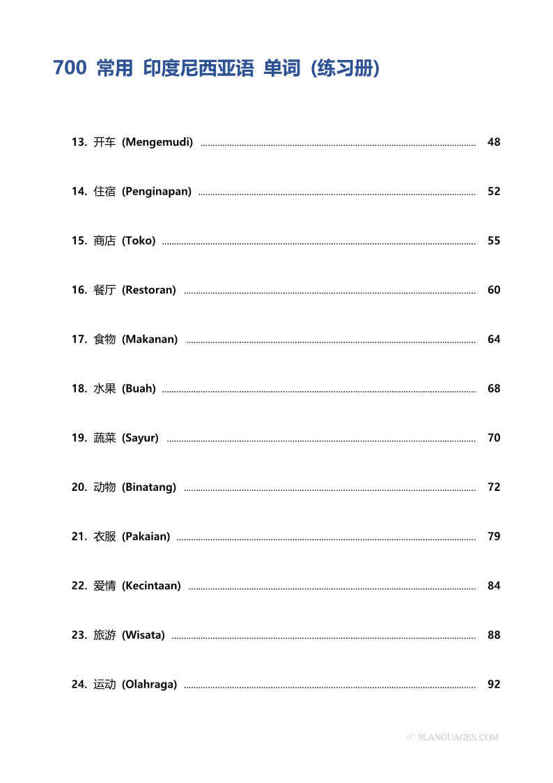 700 常用 印度尼西亚语 单词 (练习册) [PDF]