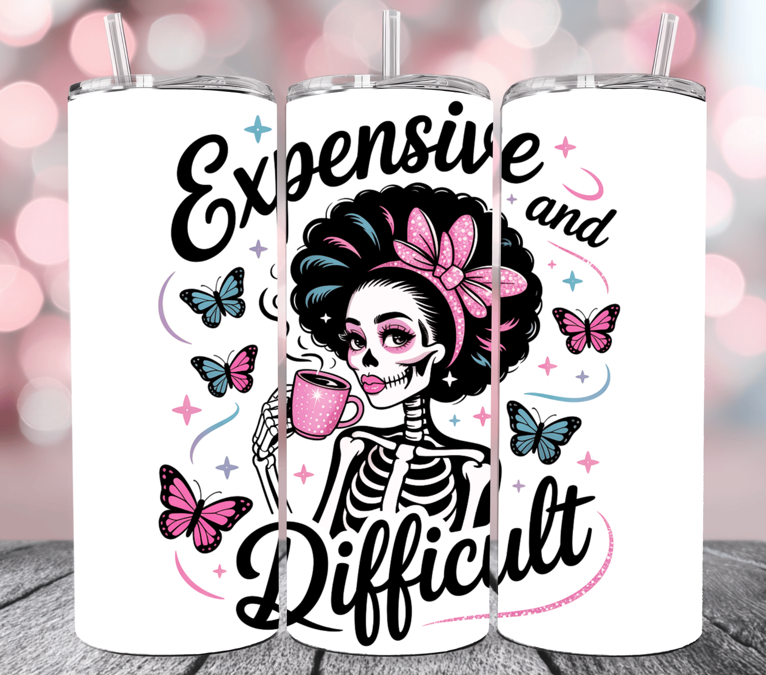 Expensive and Difficult PNG Digital Download, Sassy Skeleton Coffee Sublimation Design, Funny Tumbler Wrap Shirt Mug Craft File