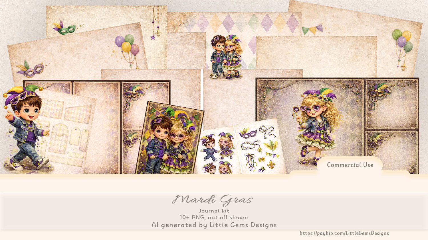 Bring festive charm and vintage elegance to your creative projects with this Mardi Gras Junk Journal Kit.