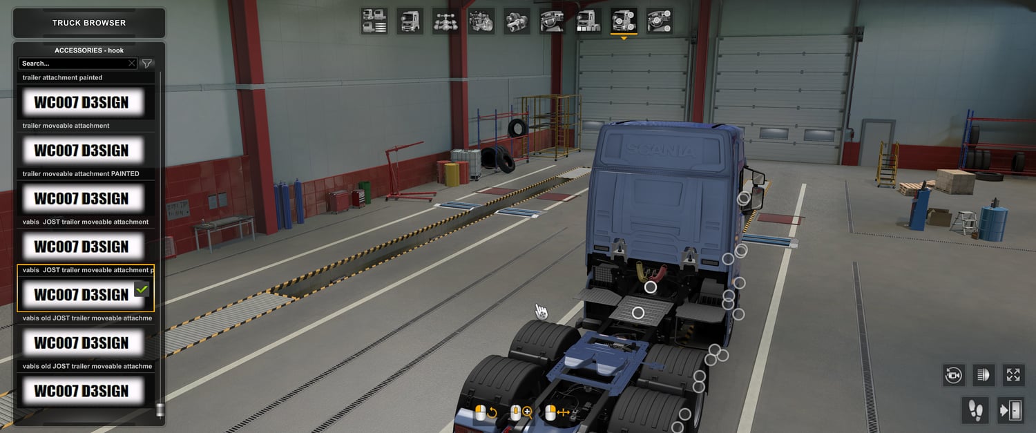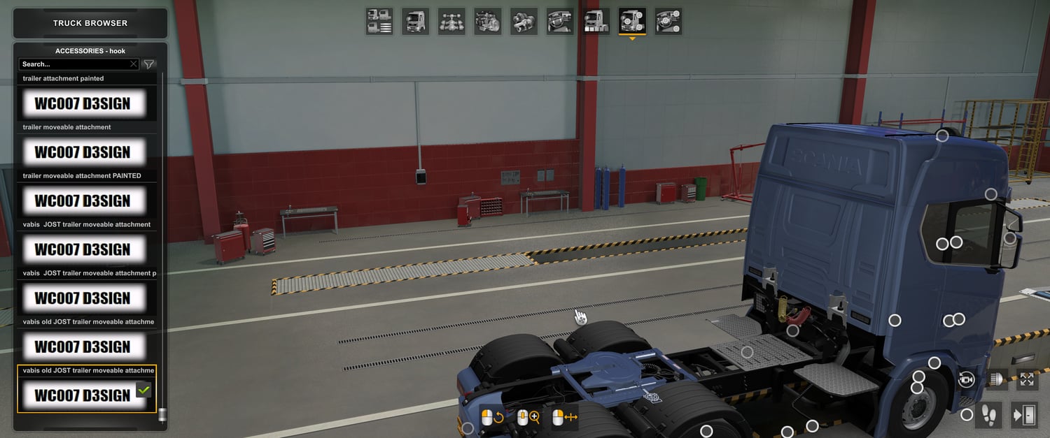 MOD description: moveable 5th wheel with scania vabis logo for 6x2 long, short and 8x4 Scania nextgen chassis
