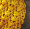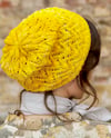 A sunburst pattern in a gloriously rich yellow colour is guaranteed to put a smile on your face every time you see this hat! The lace pattern is worked in a Fyberspates Vivacious DK merino yarn, which provides excellent stitch definition.