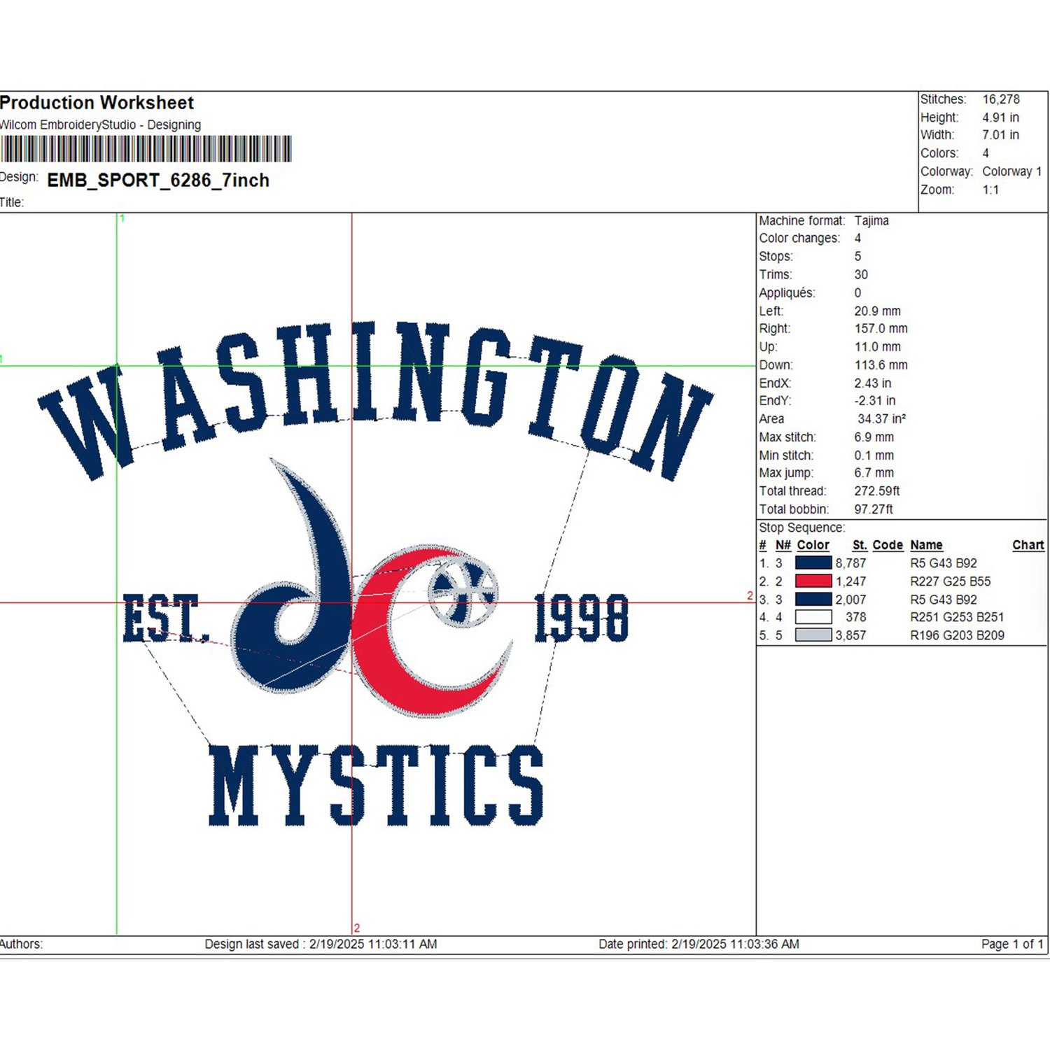 WNBA Washington Mystics Est Logo Embroidery Files, WNBA Washington Team Embroidery Designs, Basketball Teams, 3 sizes, Machine embroidery designs, Digital Download