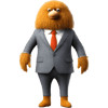 - The Corporate Fluff - A round, fluffy orange character with a distinguished look, wearing a grey suit with an orange tie that complements its natural coloring. Features a beautifully textured furry design.