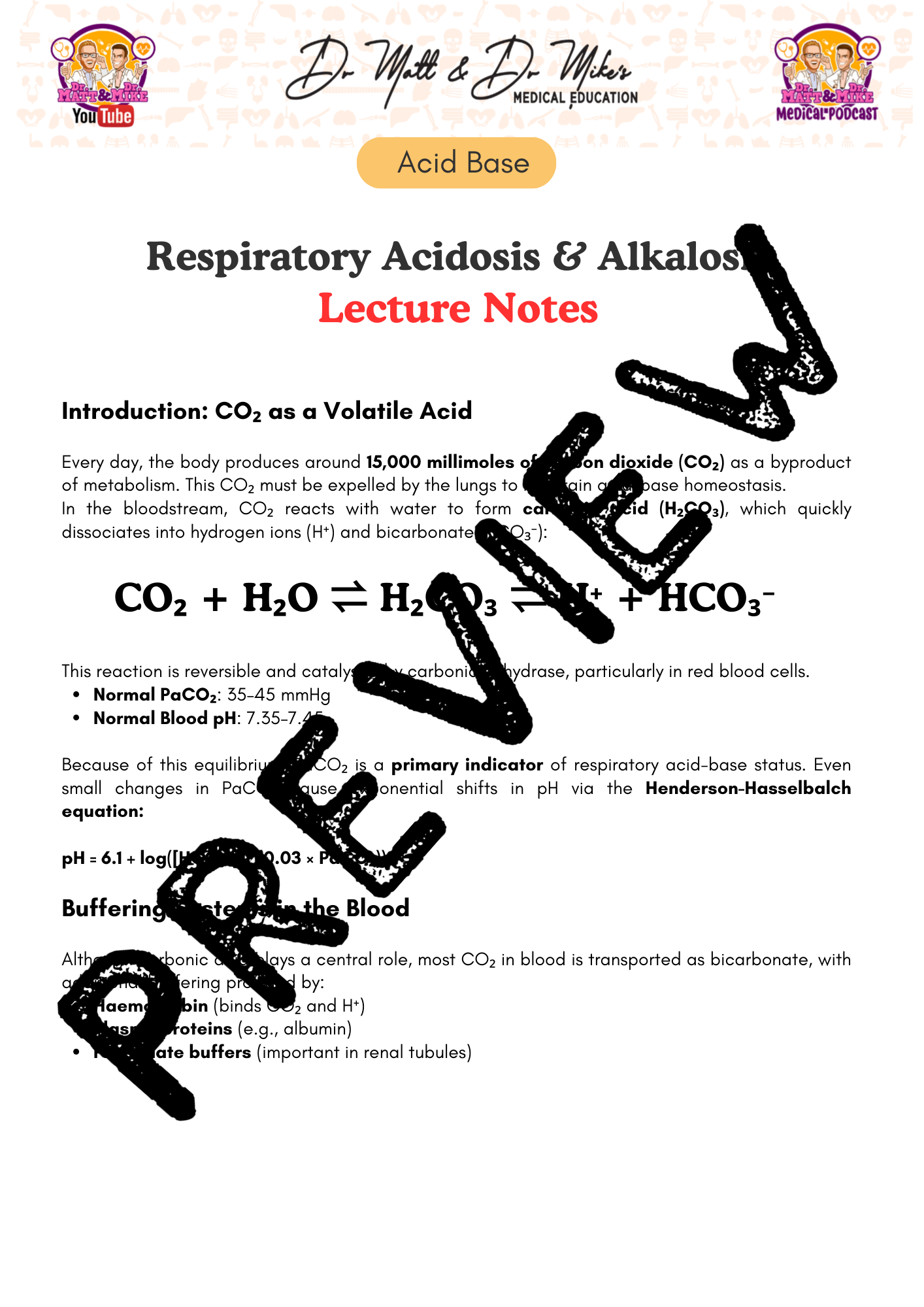 These notes are designed to complement the YouTube video by Dr Matt & Dr Mike titled: Respiratory Acidosis & Alkalosis