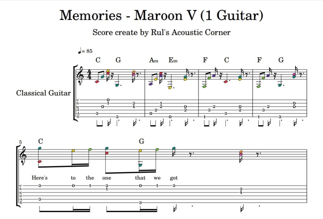 Tutorial Instrumental Maroon 5 - Memories Solo Guitar Musical Notes Tabs High Quality PDF Video Download