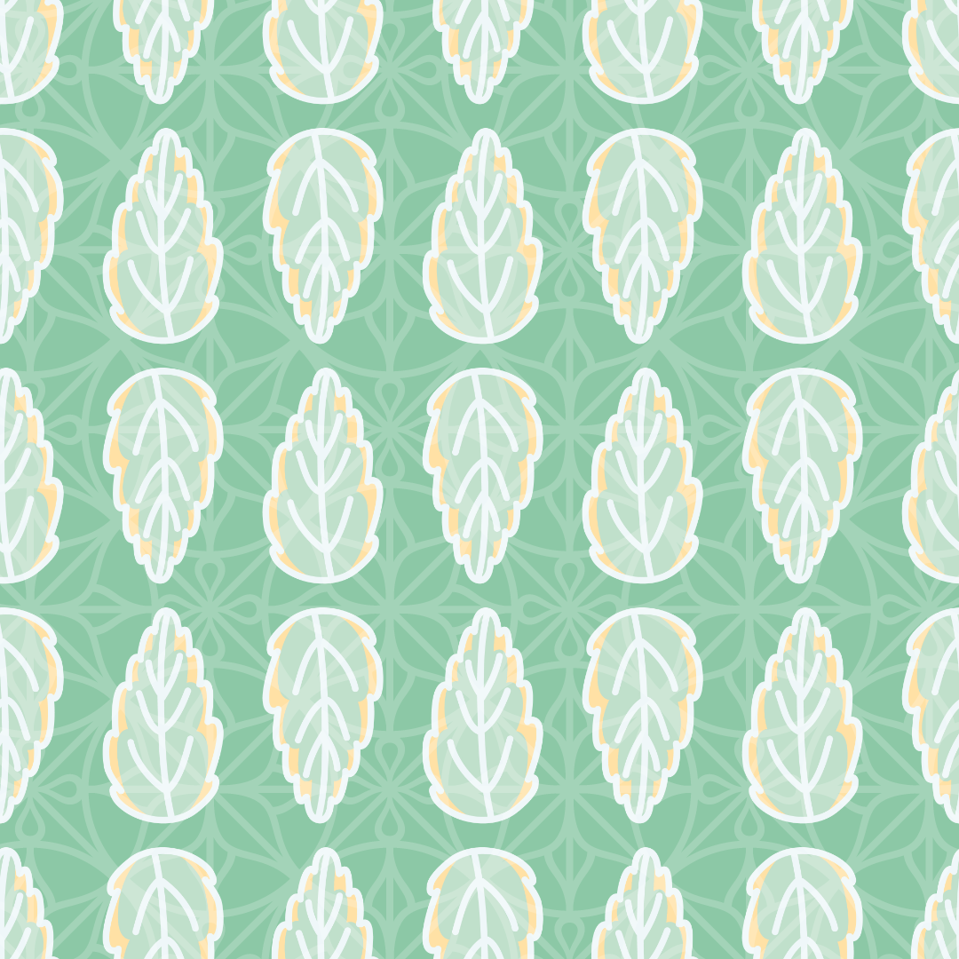 Seamless vector pattern of yellow and green leaves with crenate margins. Cute scalloped greenery illustration background.