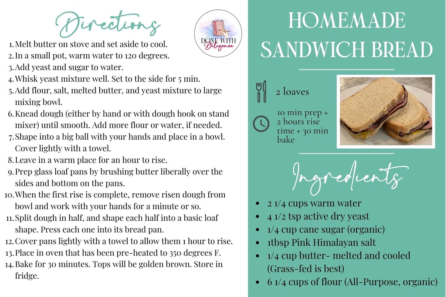 Recipe card, ready to print! Thank you for being a Done with Diligence Member! Enjoy :)
