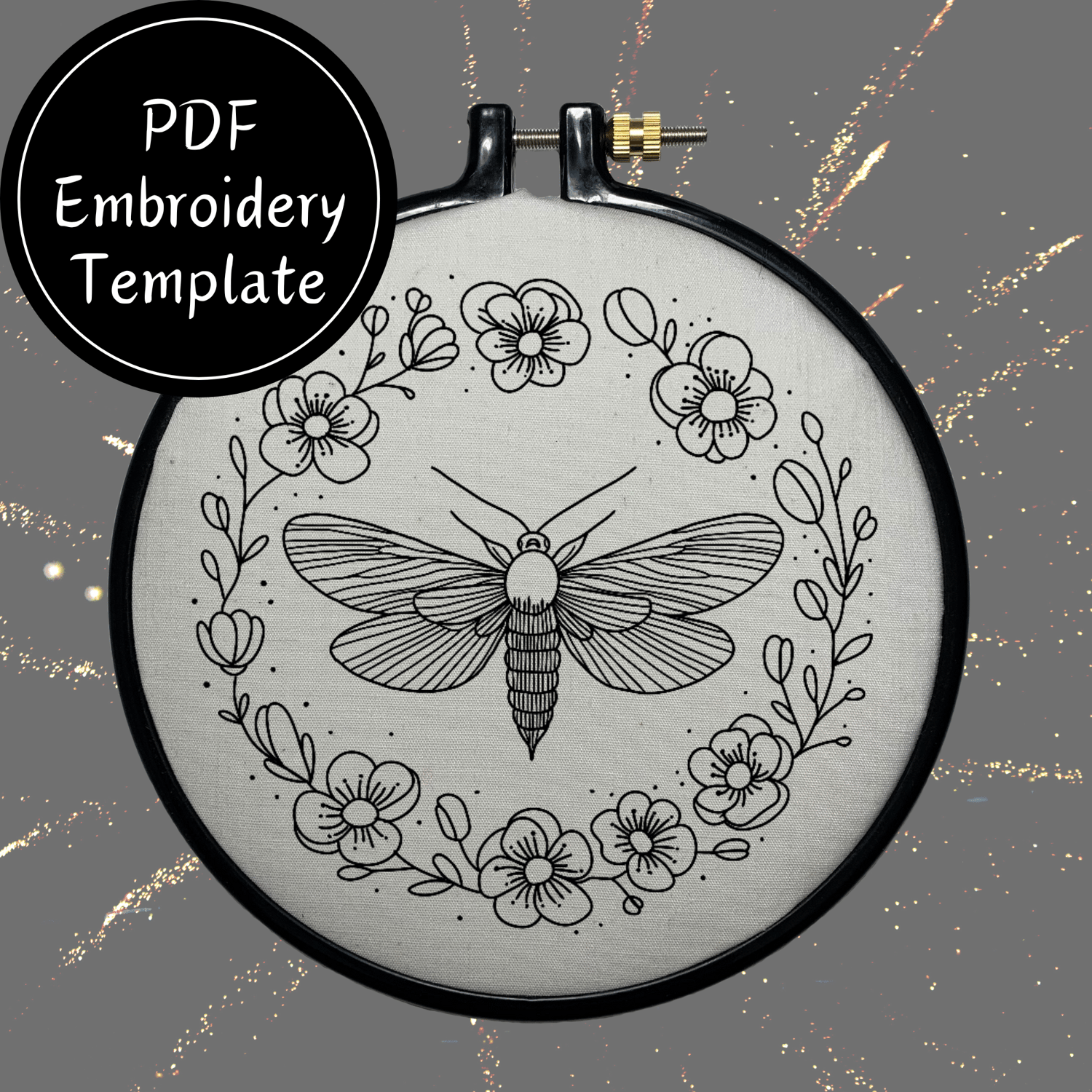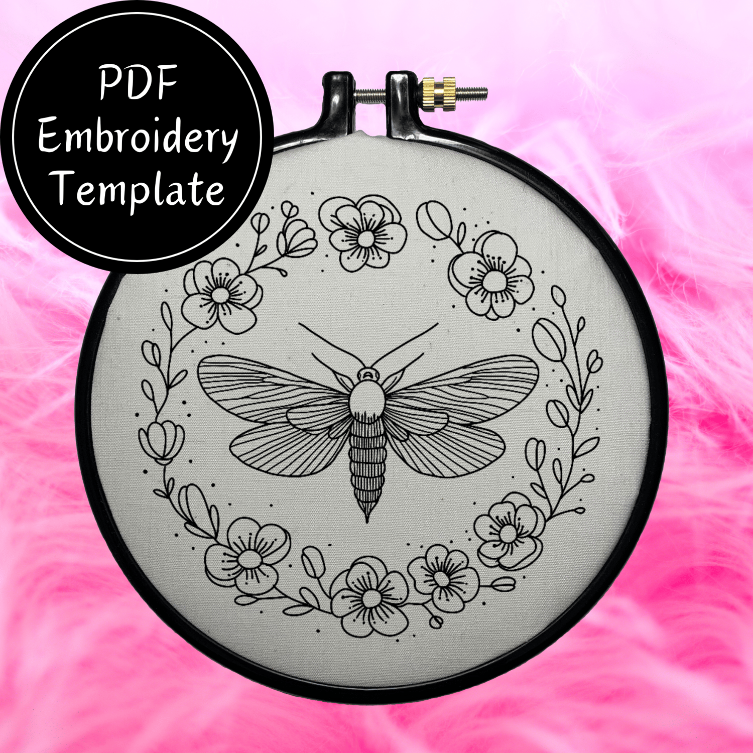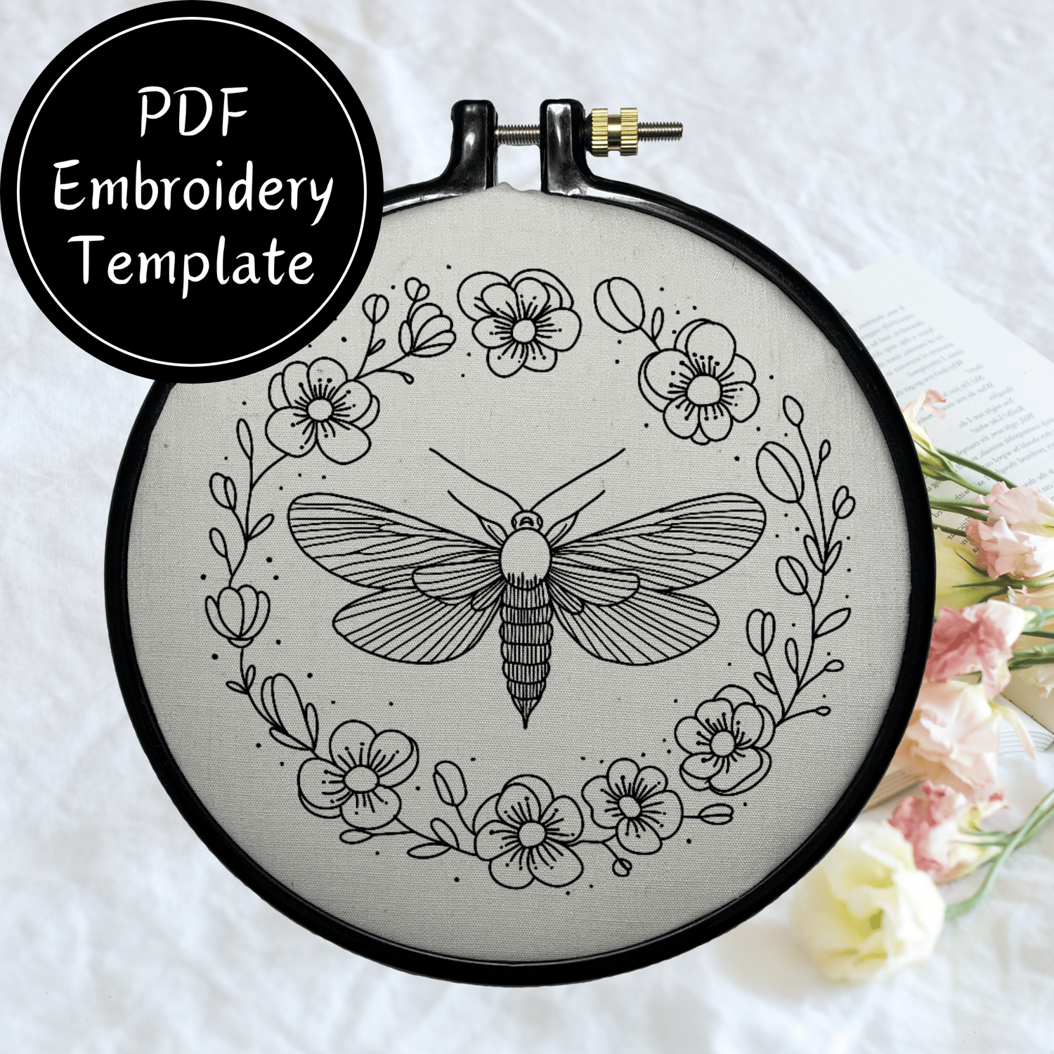 Moth and Magnolia Hand Embroidery Pattern DIY Embroidery