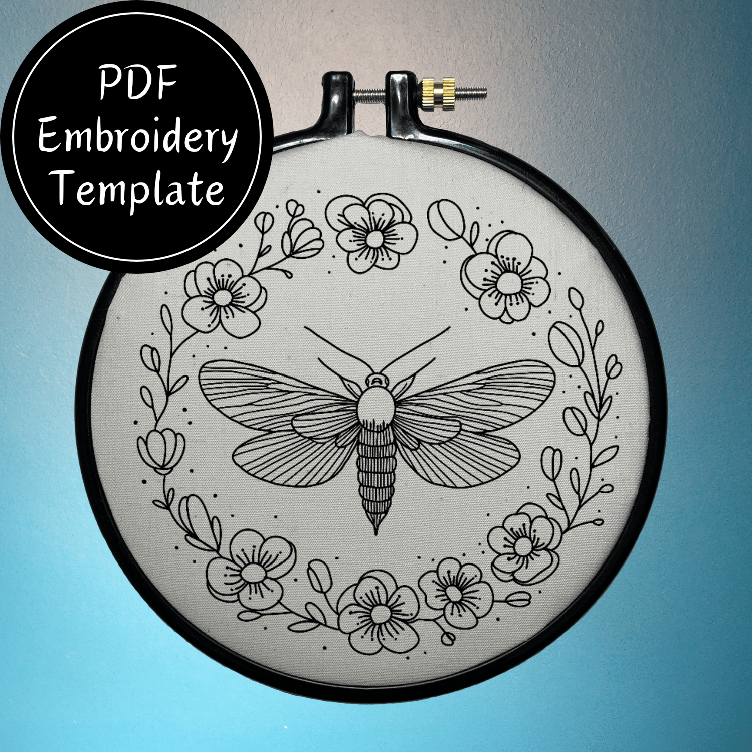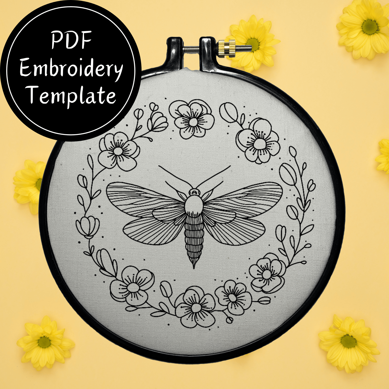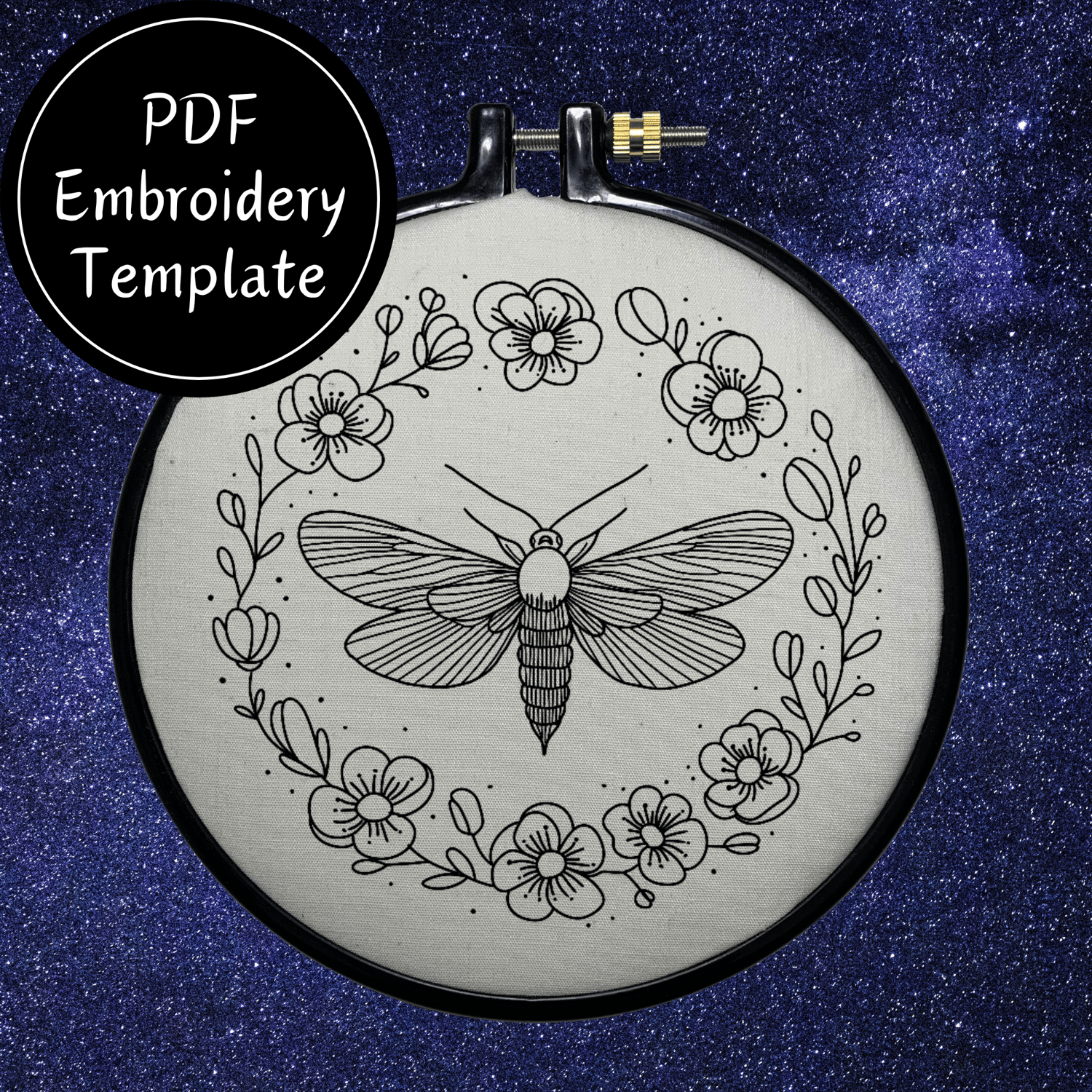 Moth and Magnolia Hand Embroidery Pattern DIY Embroidery