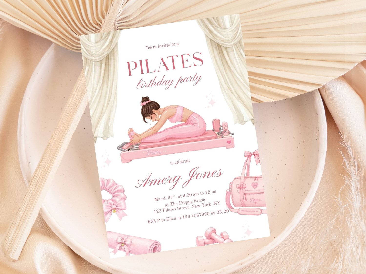 Celebrate in the most chic, feminine, and aesthetic way with this Pilates-themed birthday invitation π