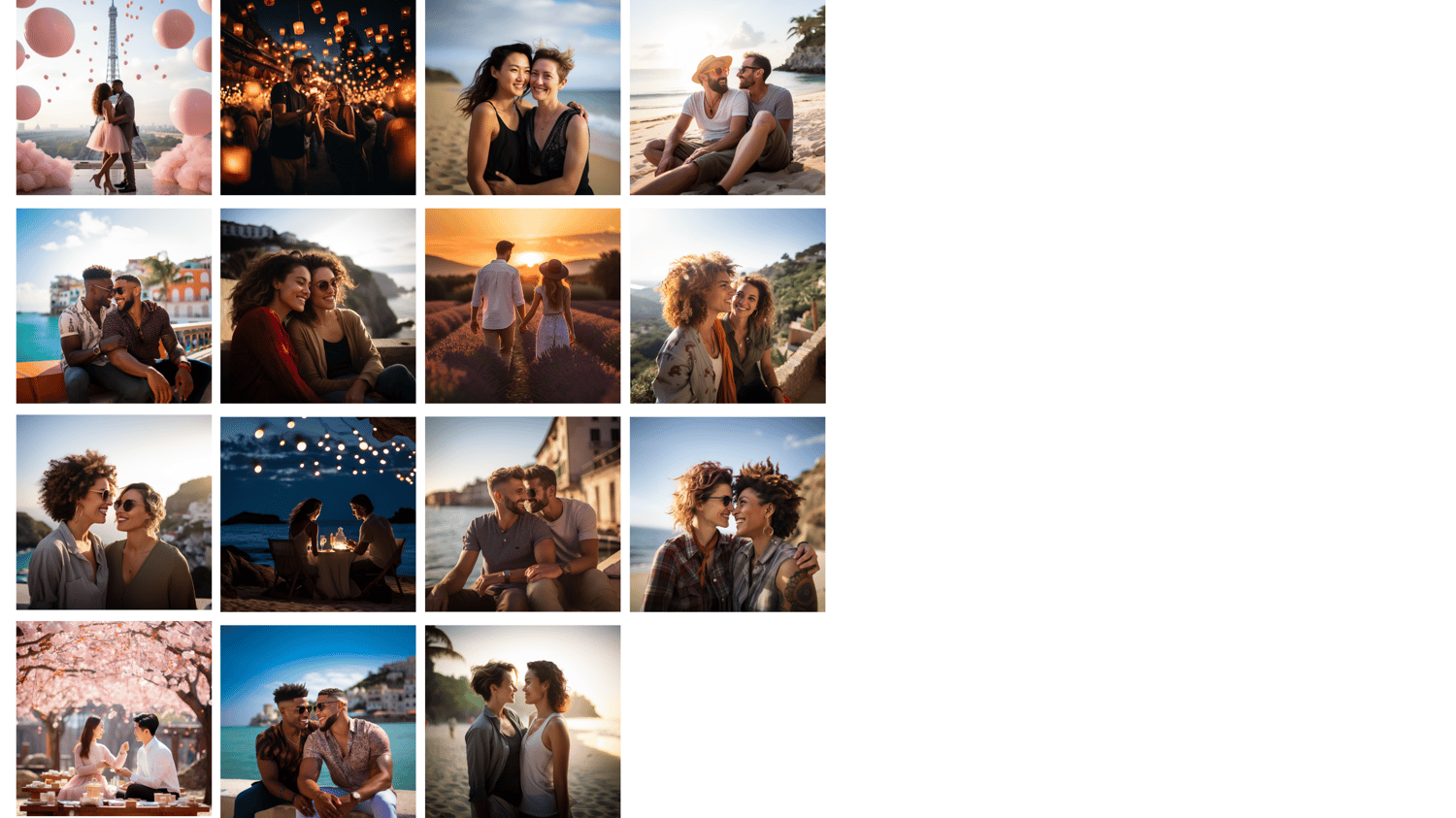In the world of content creation, authenticity and diversity are key! We are thrilled to unveil our meticulously curated collection of 75 AI-generated stock photos, featuring couples from different walks of life sharing heartwarming, romantic, and joyous moments together.
