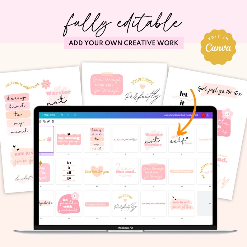 Ideal for entrepreneurs, digital planners, and mental health advocates aiming to provide inspiring and customizable content to their audience.