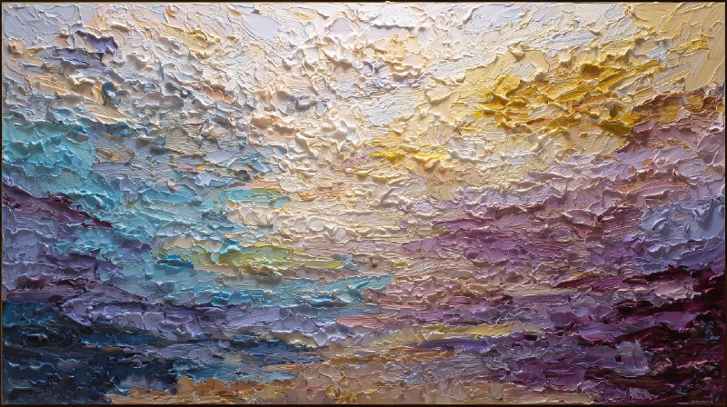 Generate a flowing, high-detail abstract oil painting with impasto texture and palette knife strokes. Features layered thick paint, horizontal movement, soft gradient color blending, and no focal center for an elegant, modern composition. Realistic paint depth, ultra-sharp details, and gallery-style lighting create a premium canvas look. Perfect for luxury interiors, digital wall art, or gallery-ready visuals. Keywords: abstract painting, impasto, oil painting, palette knife, premium canvas, luxury wall art, layered textures, modern decor.