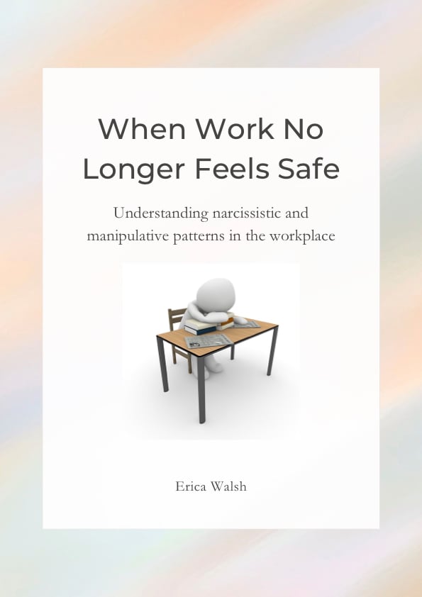 When Work No Longer Feels Safe is a short professional guide to understanding narcissistic and manipulative patterns in the workplace. It is written for people trying to make sense of confusing, destabilising, or psychologically unsafe workplace dynamics, and for professionals supporting them.