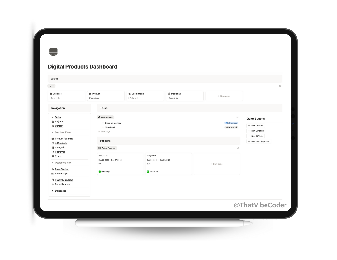 This dashboard gives you one clean system to organize, track, and scale everything related to your digital products—no more mental overload.