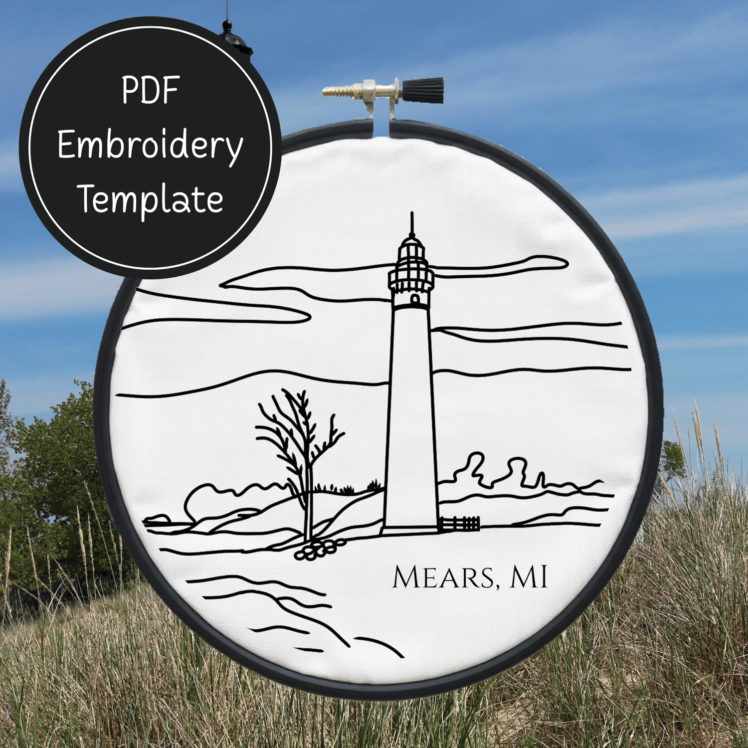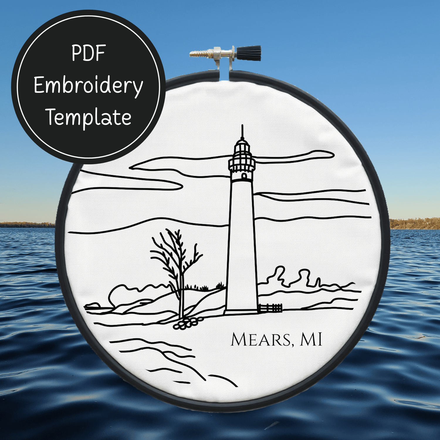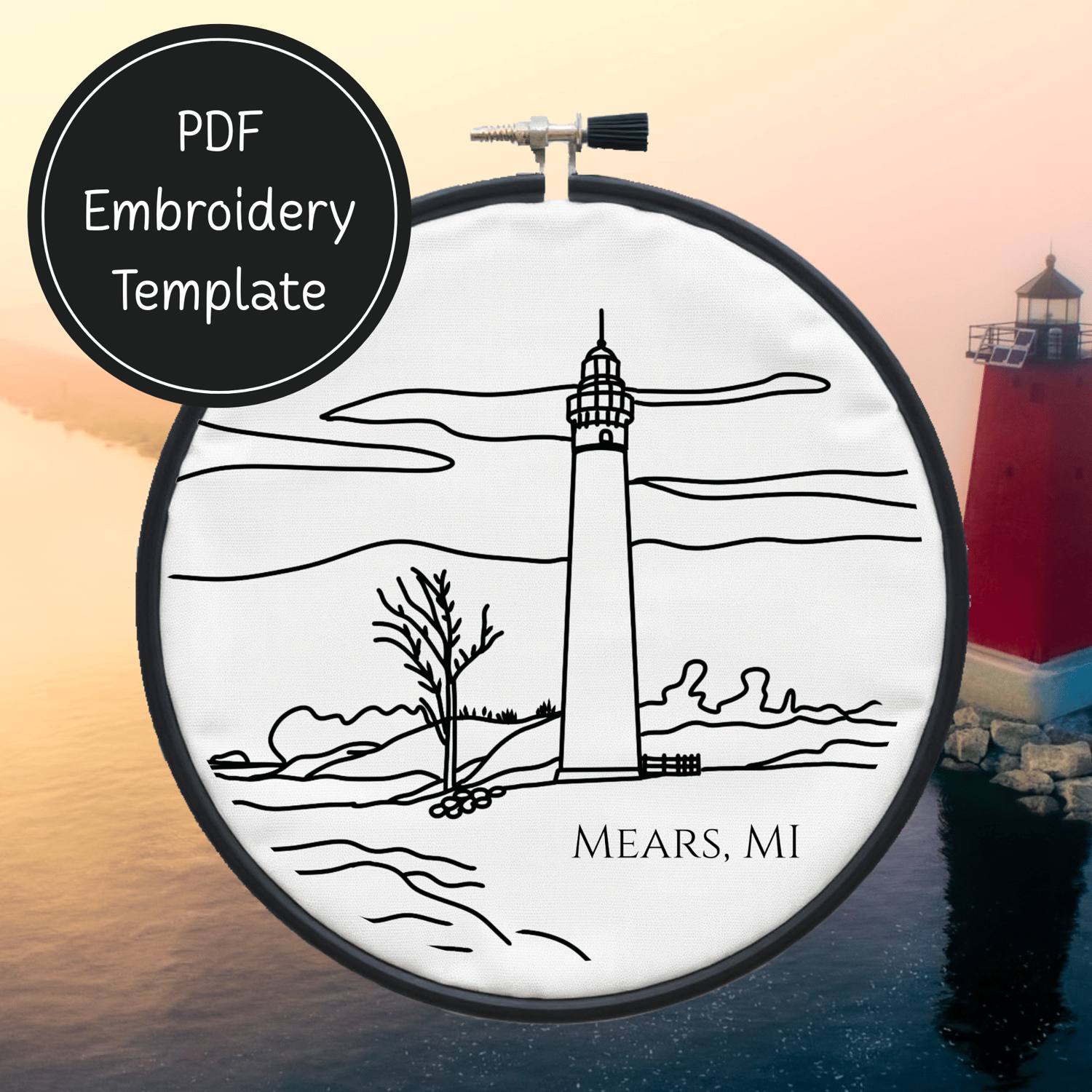 Lighthouse Mears Michigan Hand Embroidery Pattern DIY Lighthouse Series Design For Hand Stitching - Instant Download