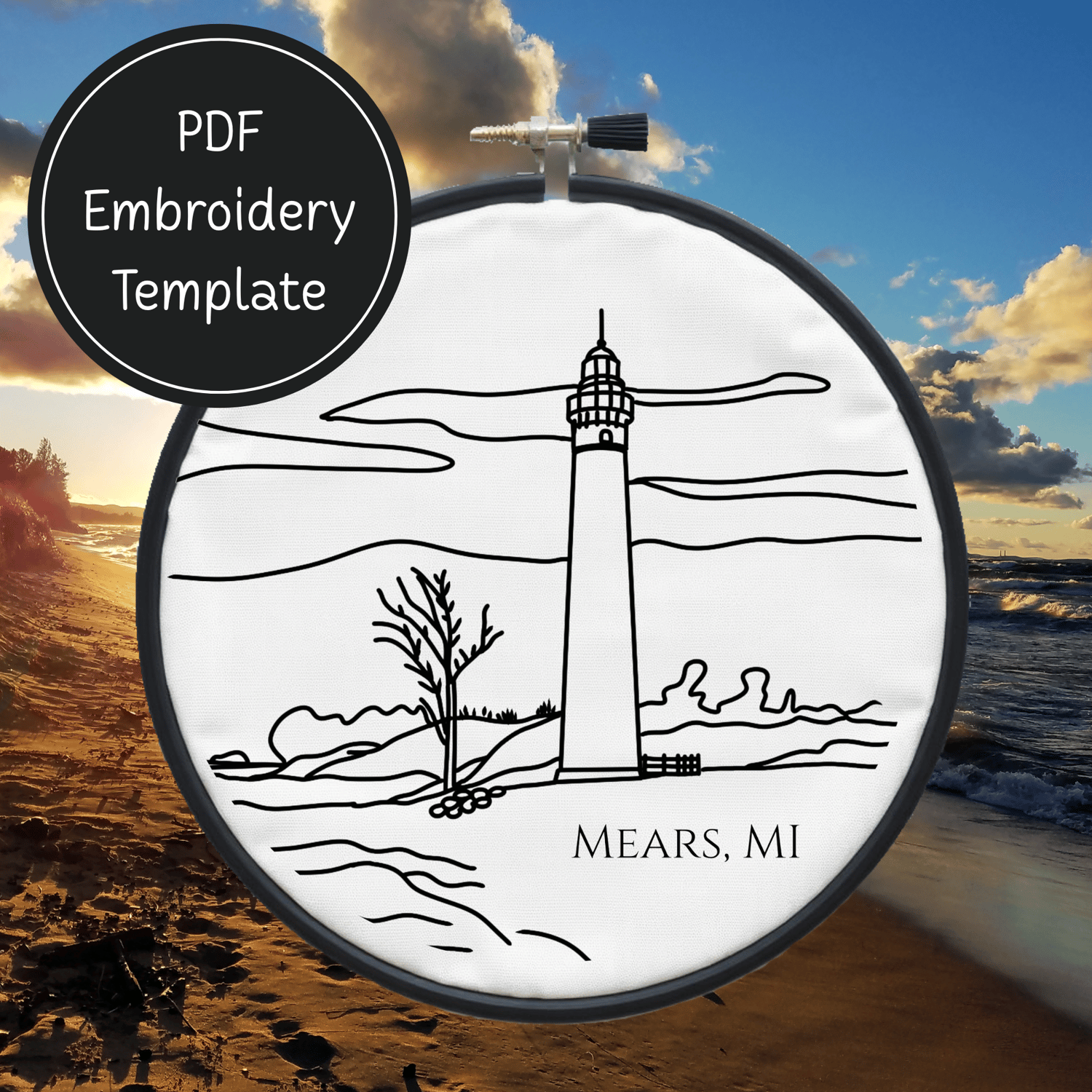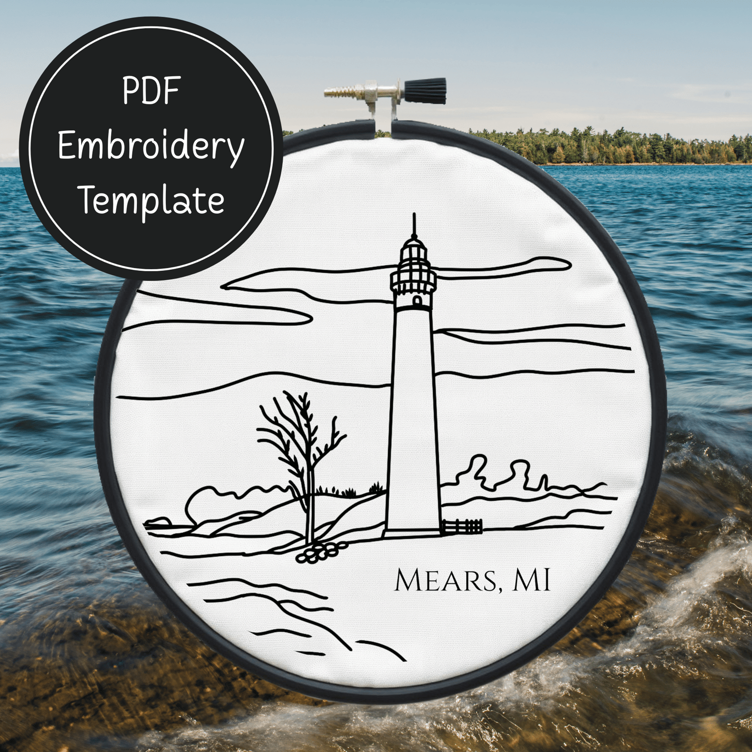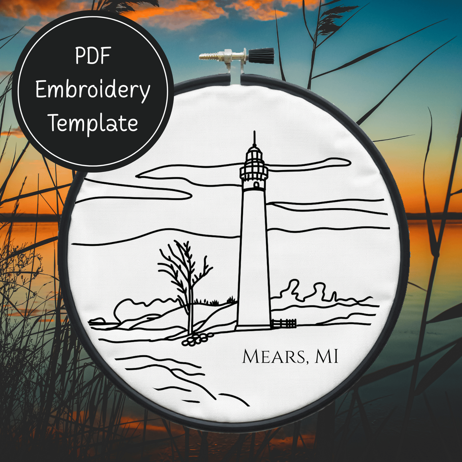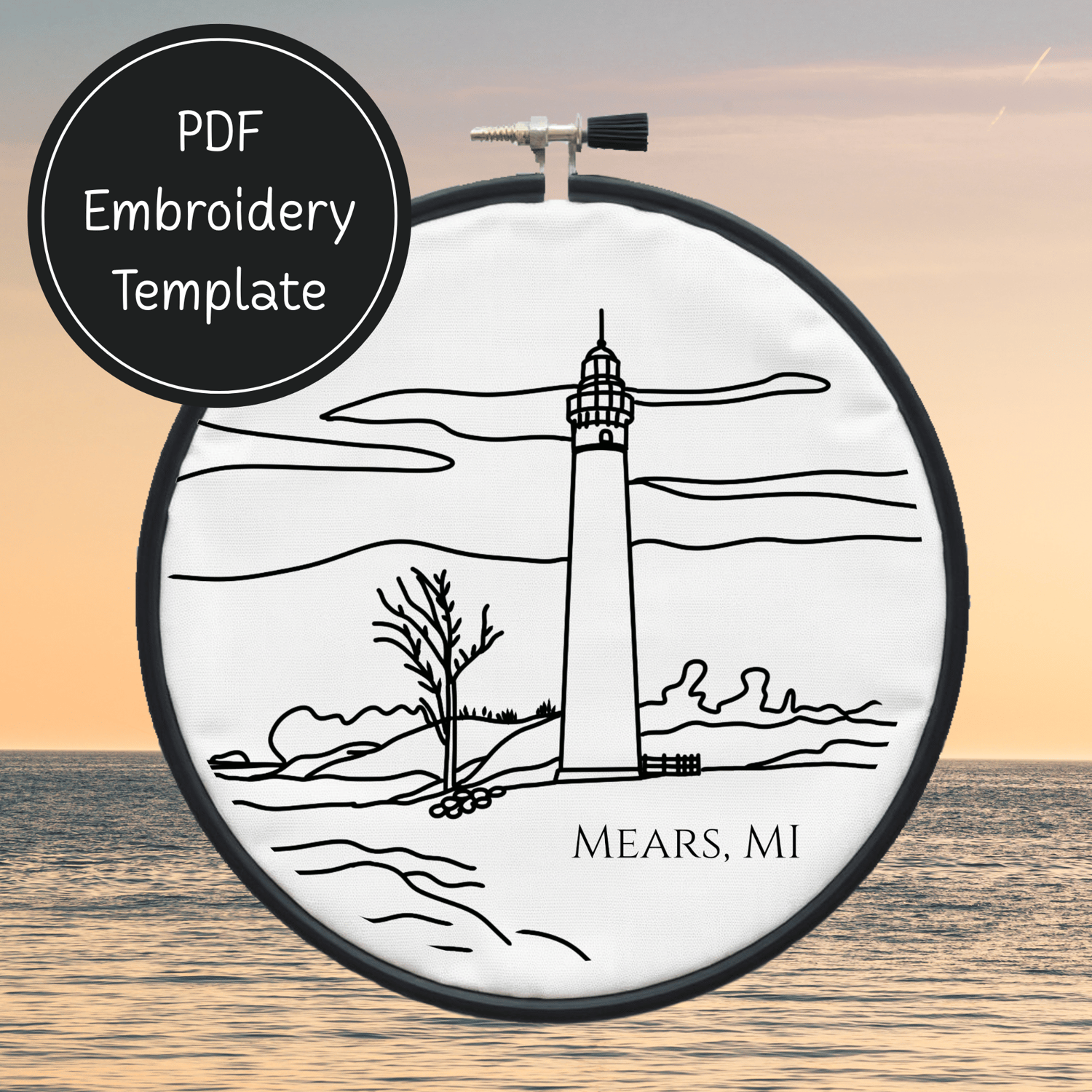 Lighthouse Mears Michigan Hand Embroidery Pattern DIY Lighthouse Series Design For Hand Stitching - Instant Download