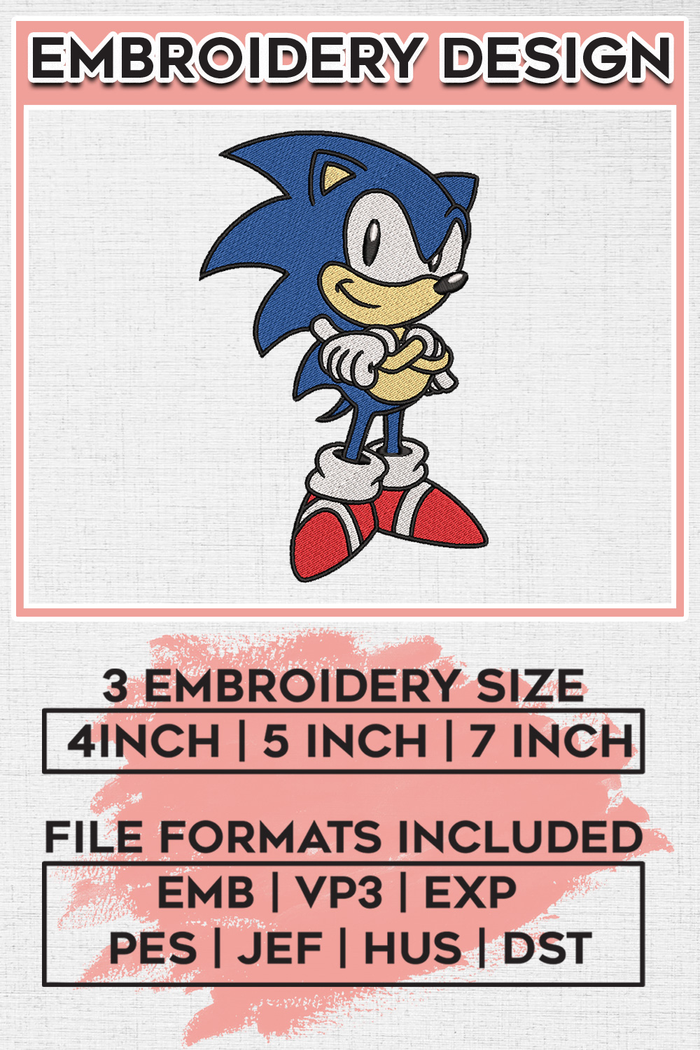 The Hedgehog Sonic Embroidery Designs, Sonic The Hedgehog Machine Embroidery Files, Cartoon Character embroidery designs, Sonic Character, Digital Download