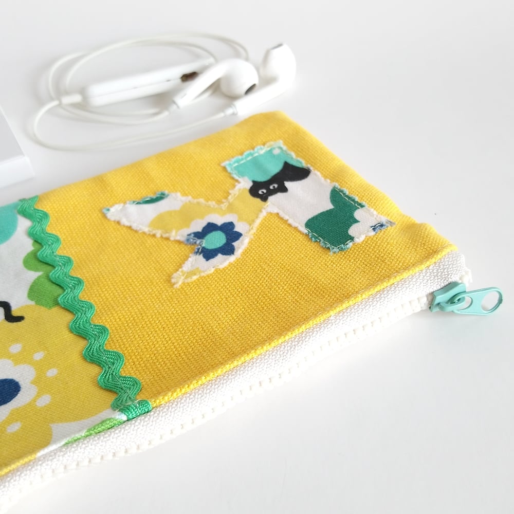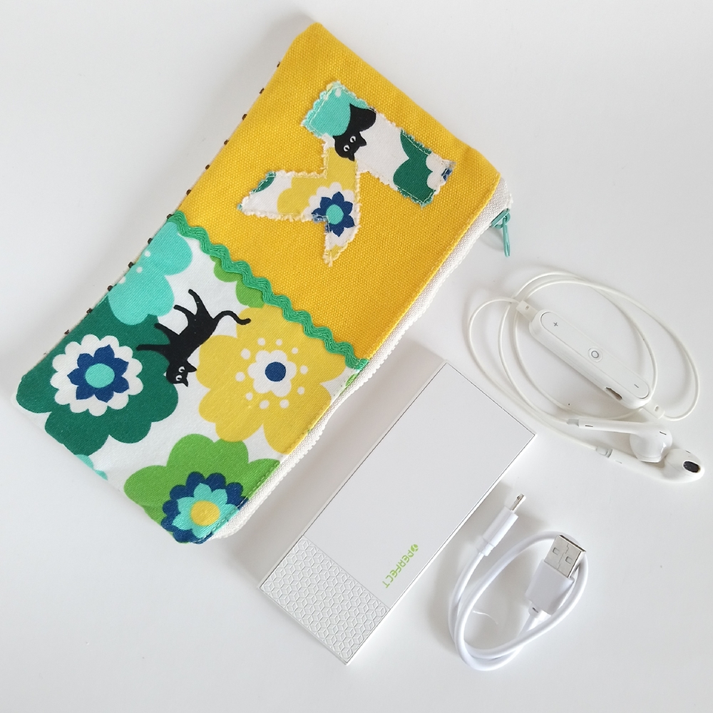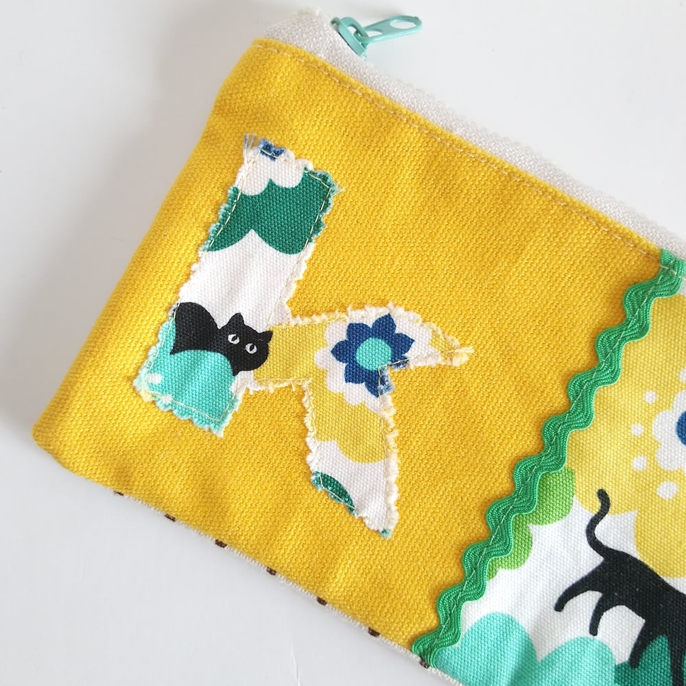Alphabet Applique Pouch, Mask Pouch (k, Yellow x Black cats)