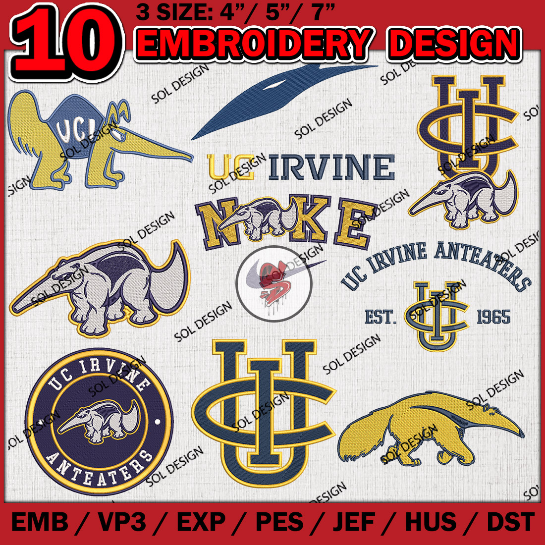 10 UC Irvine Anteaters Bundle Embroidery Files, College Football Embroidery Designs, NCAA UC Irvine Anteaters Machine embroidery Design Bundle, Ncaa UC Irvine Logo bundle, Digital Download