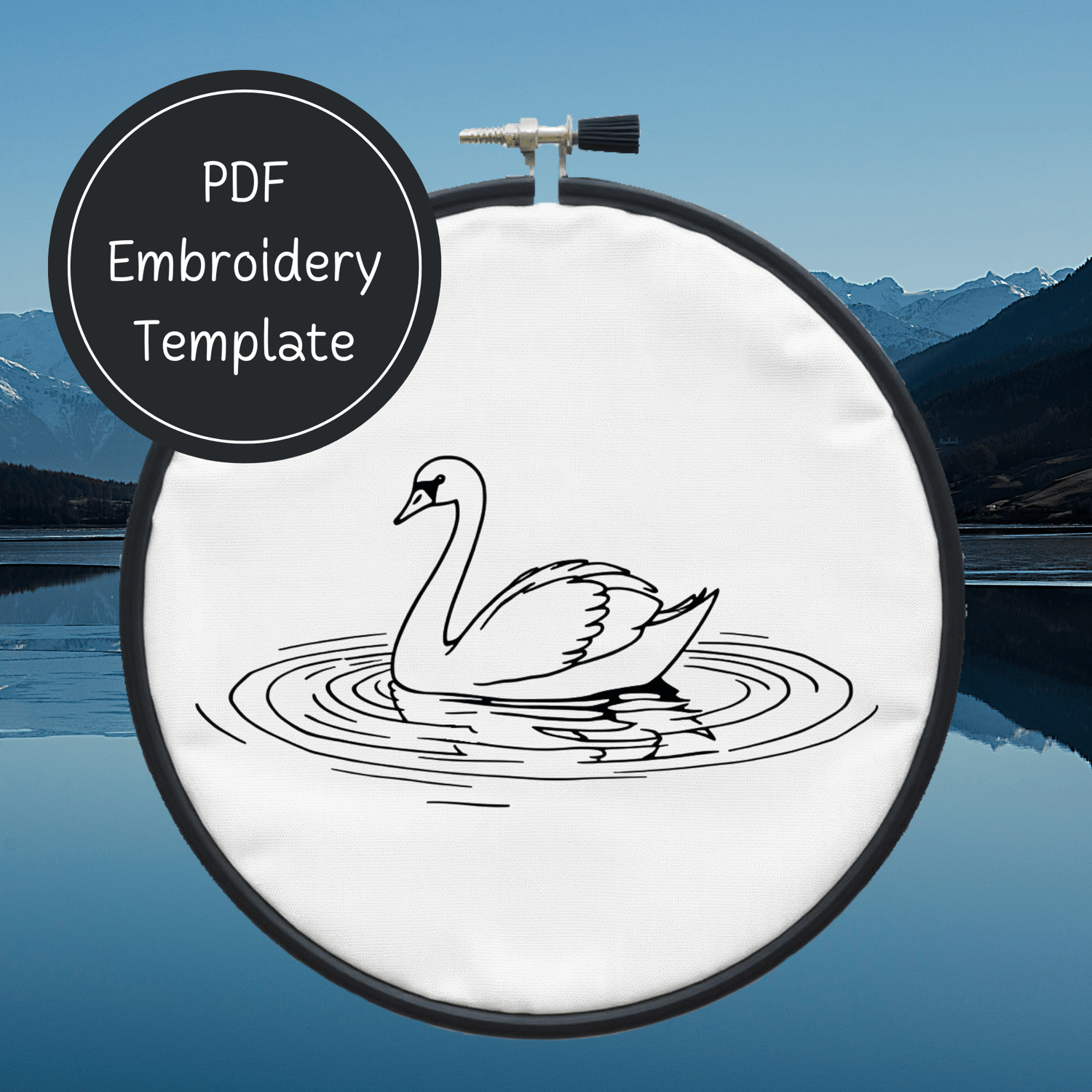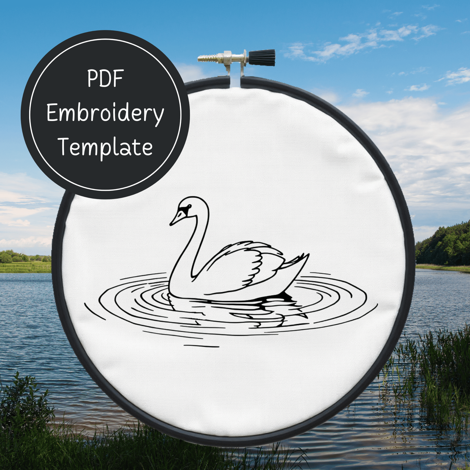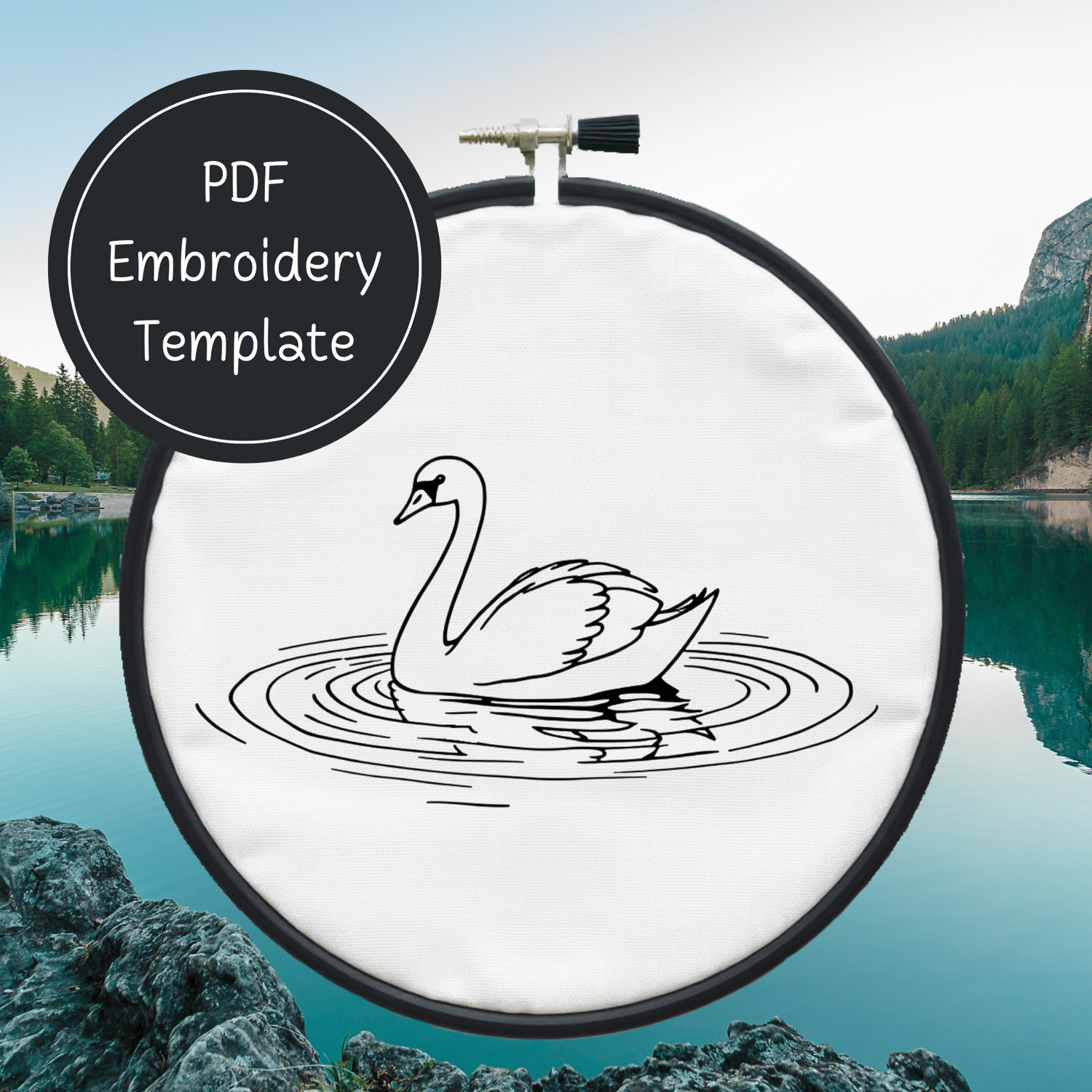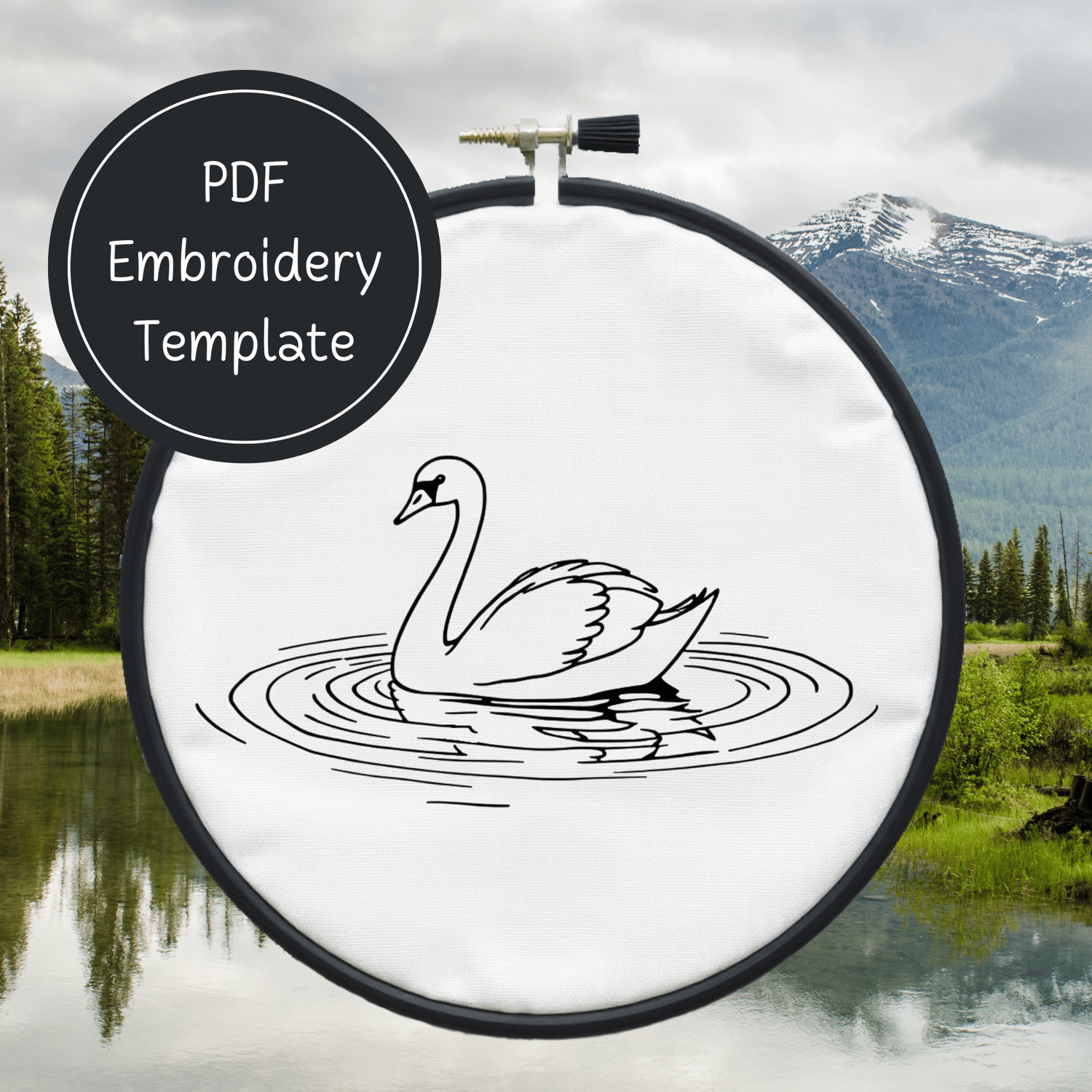 Swan Embroidery Template PDF - DIY Elegant Swan Design For Hand Stitching - Instant Download