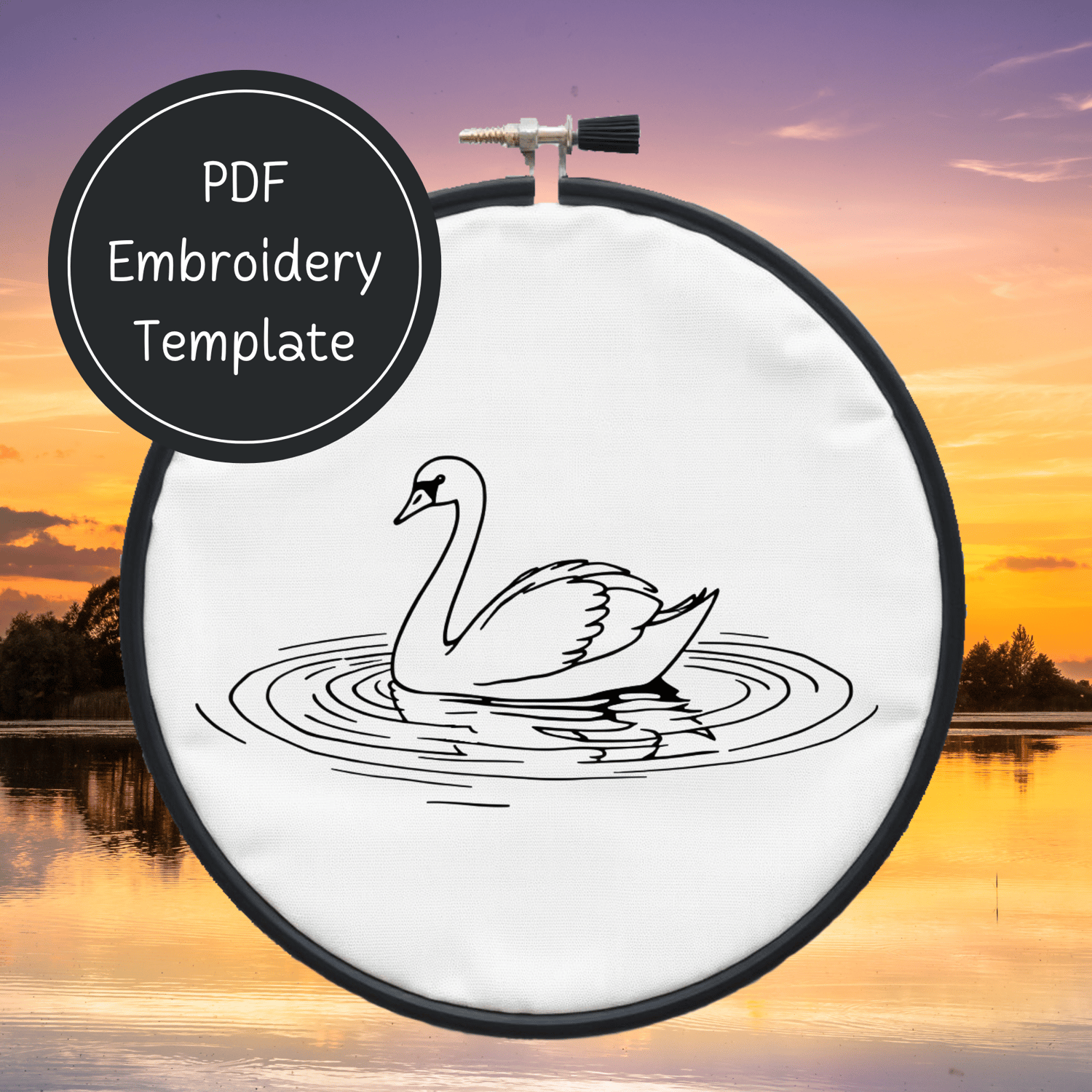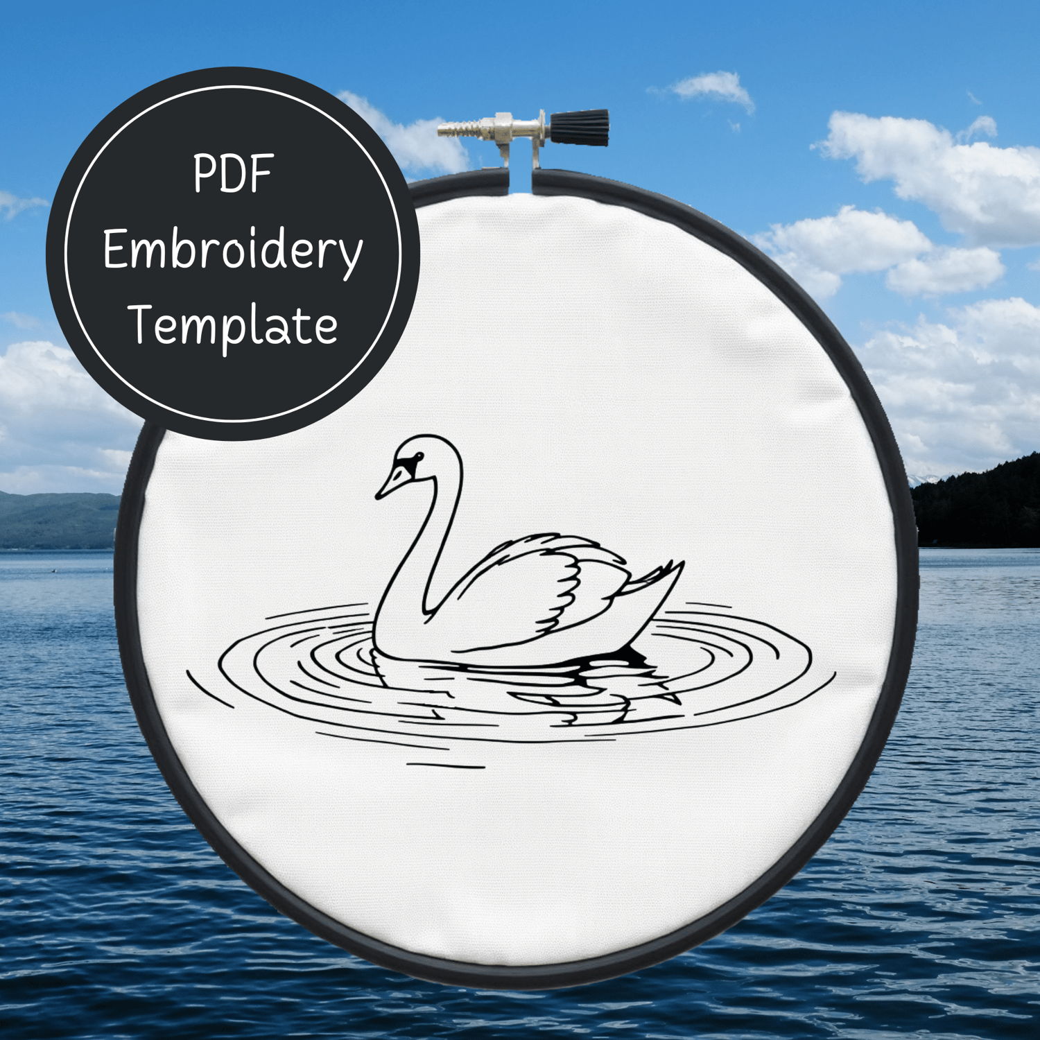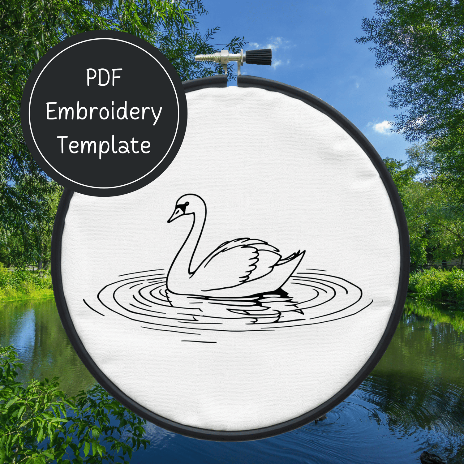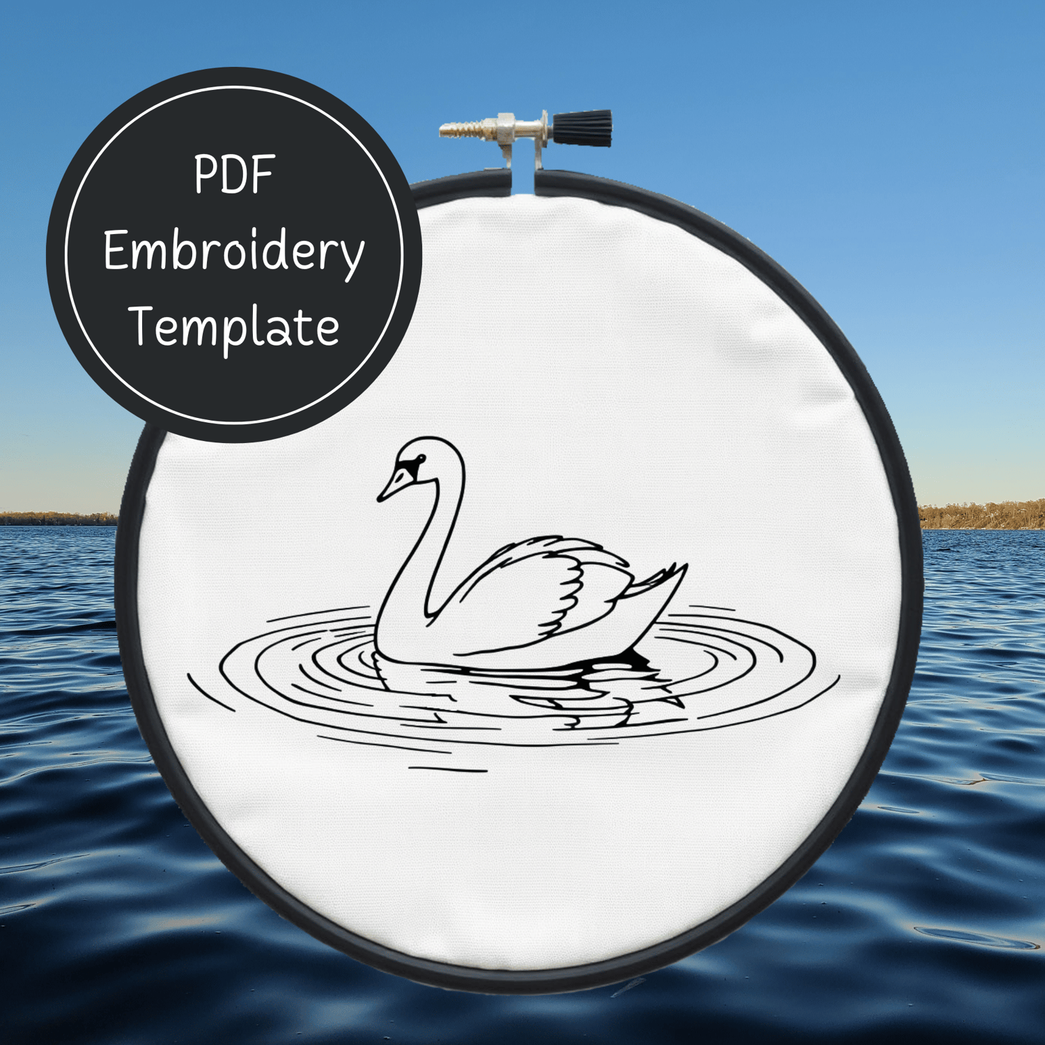 Swan Embroidery Template PDF - DIY Elegant Swan Design For Hand Stitching - Instant Download