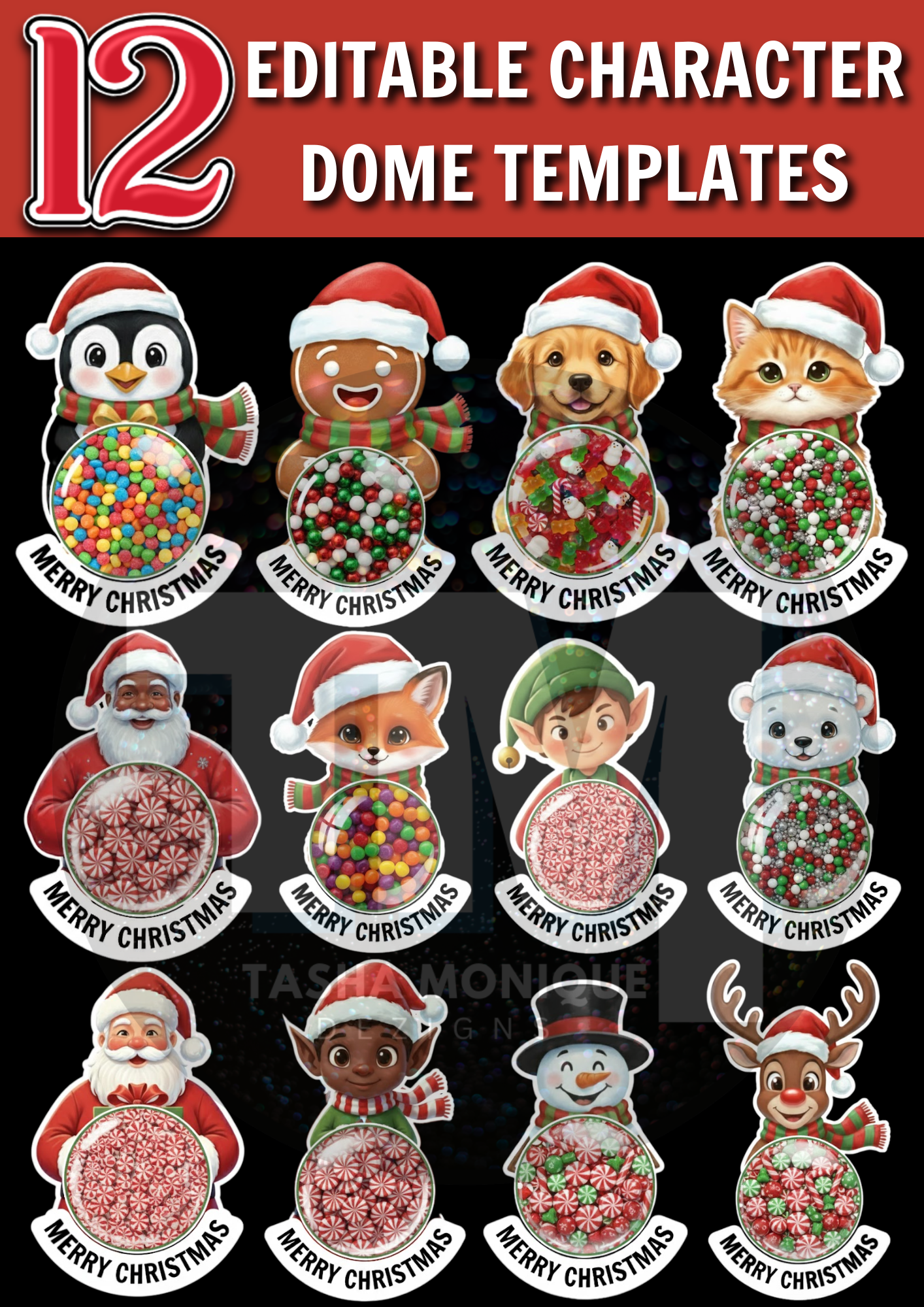EDITABLE CHRISTMAS CHARACTERS CANDY DOME HOLDER TEMPLATES