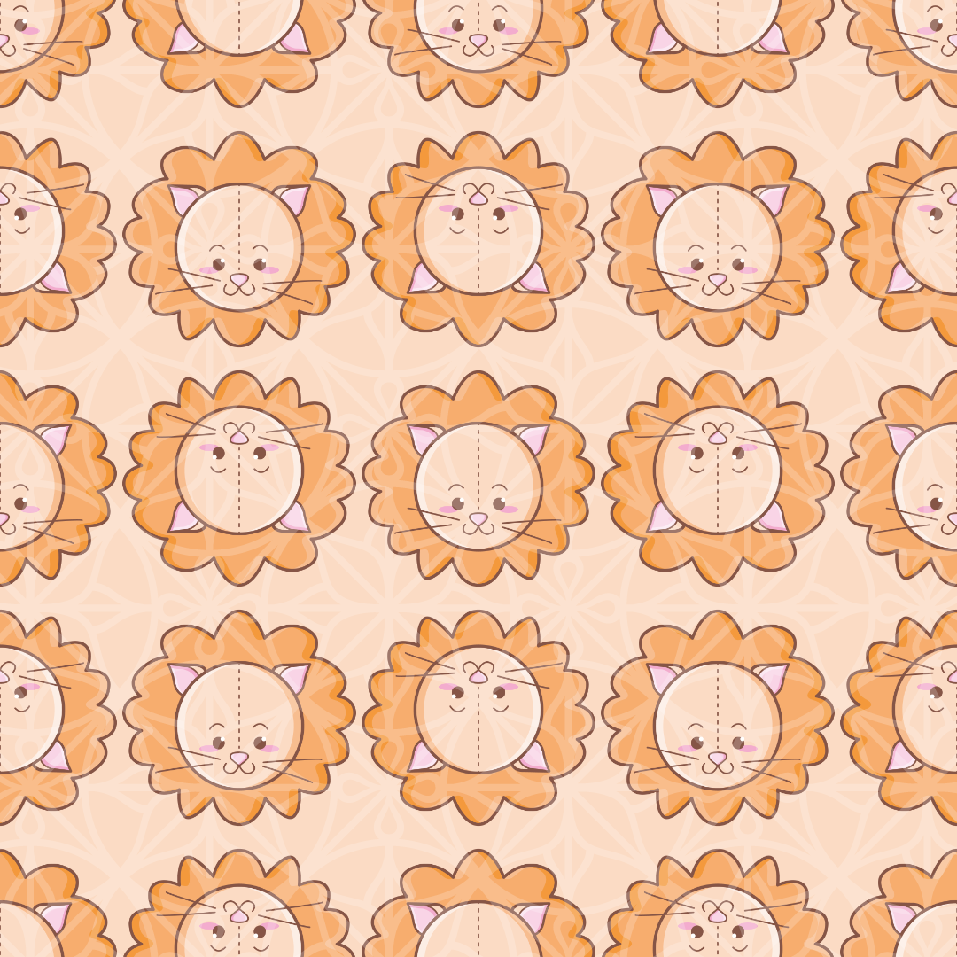 Cute little lion vector repeat pattern. Kawaii plush head illustration background.