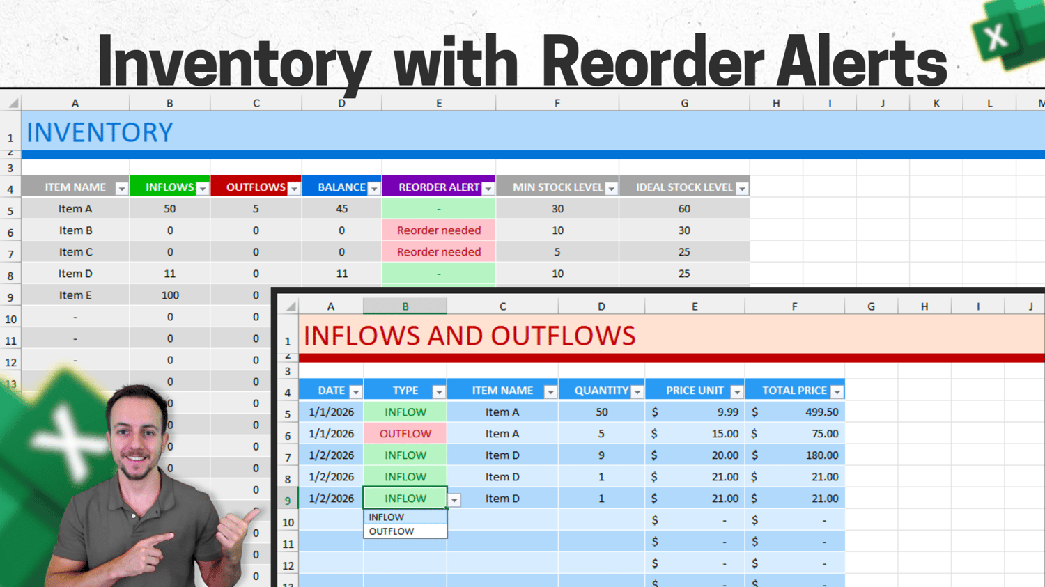 Excel Inventory with Automatic stock tracking, Reorder alerts and Purchases and Sales.xlsx