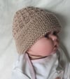 This 8ply/DK baby beanie has a garter stitch, turned up brim, then is worked in an easy textured stitch which would suit either a girl or a boy. The crown shaping rows are written out for you to ensure the pattern stitch follows up correctly.
