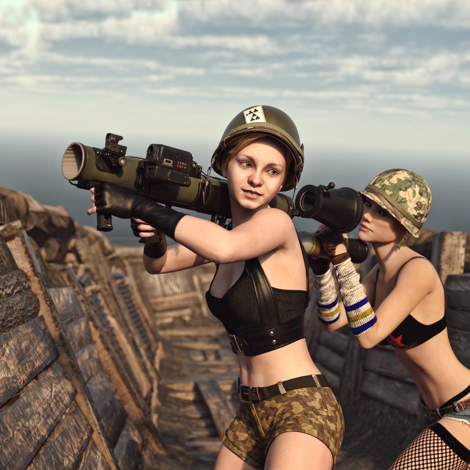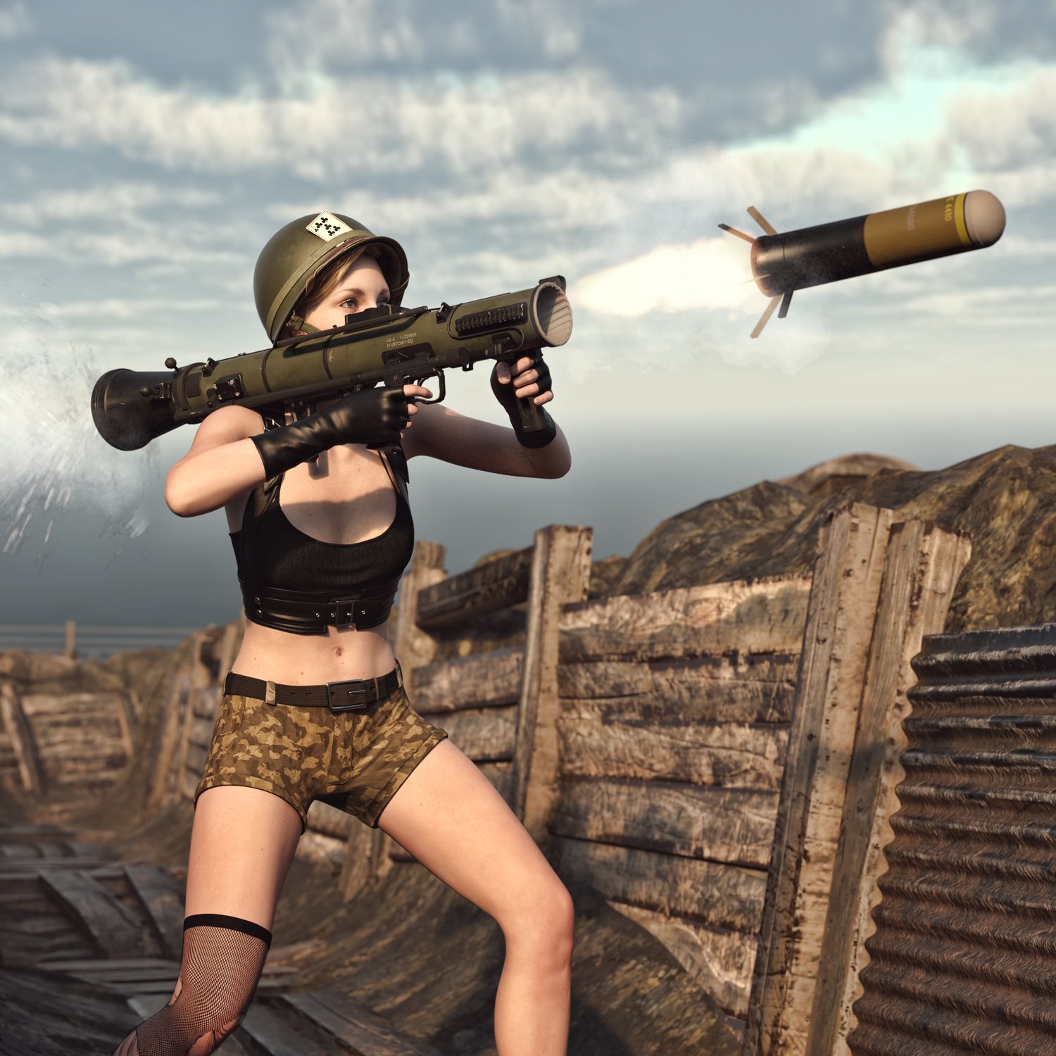 A portable anti tank and probably anti aircraft launcher :) This is an imaginary launcher based on Carl Gustaf recoilless rifle. Rigged and converted for use with DAZ. Usually operates in a team of two, the shooter and the loader. Trigger, handle etc also rigged for more realistic pictures. Includes a sight for various porpoises and pictures. also includes a missile prop so you can make cool pictures with it. Rear part is rigged so your friends can help you load.