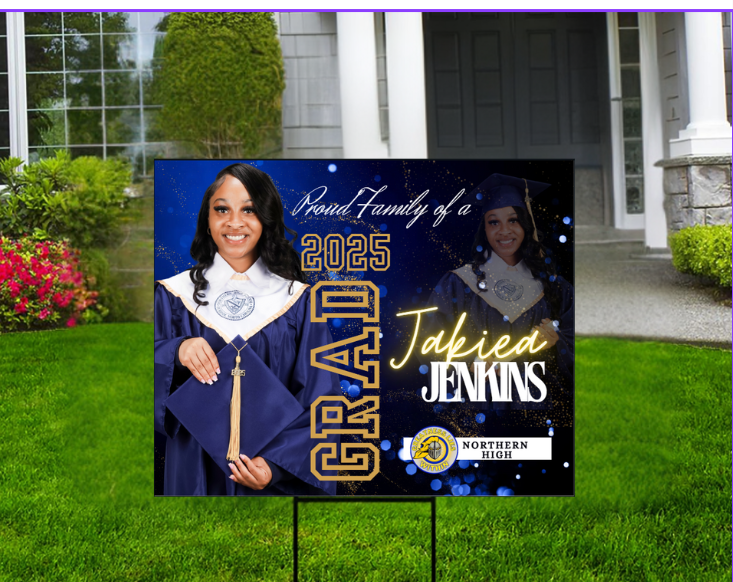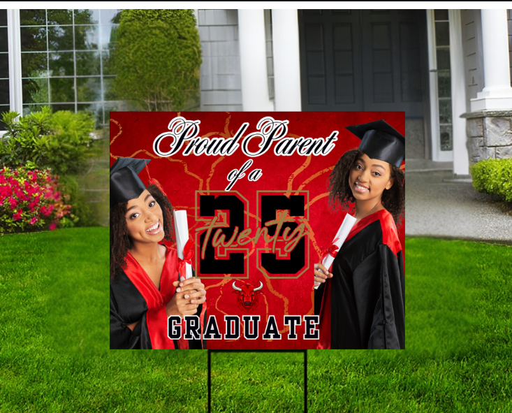 Celebrate your graduation with our custom yard signs. Add a personal touch with color selection, pictures, and text.