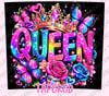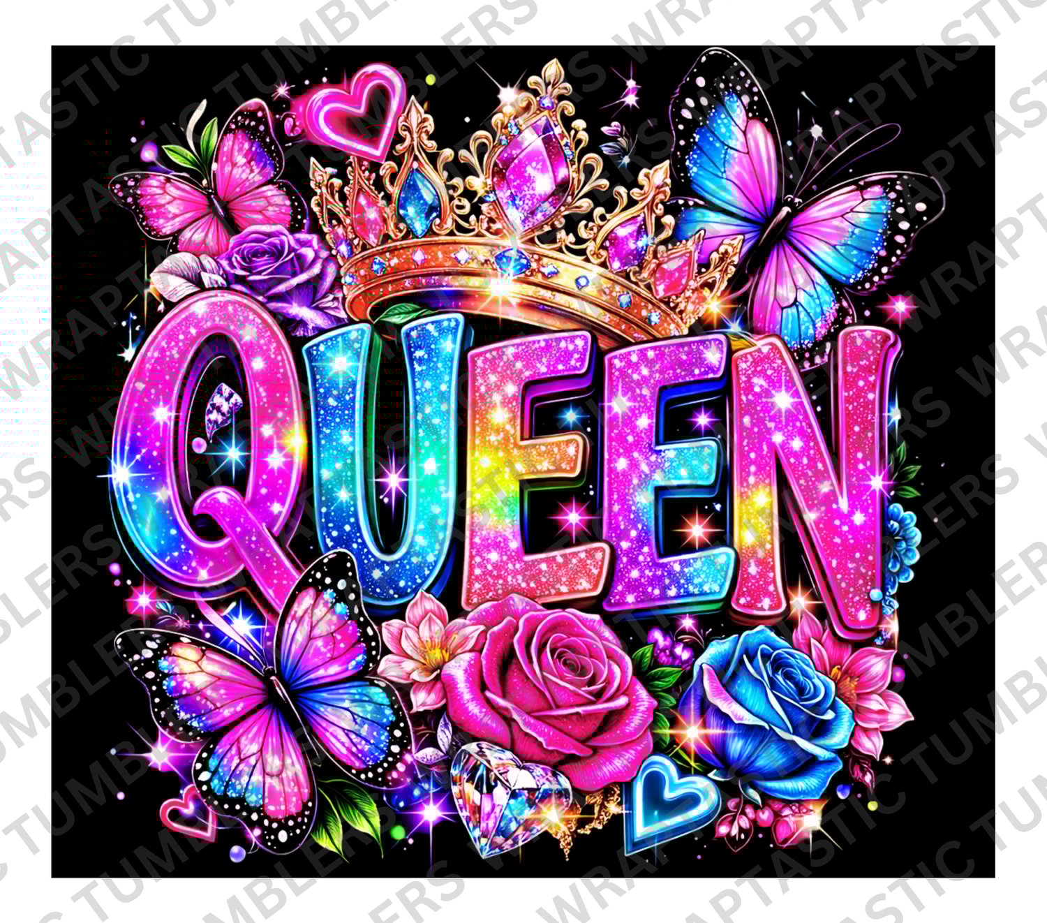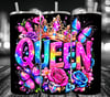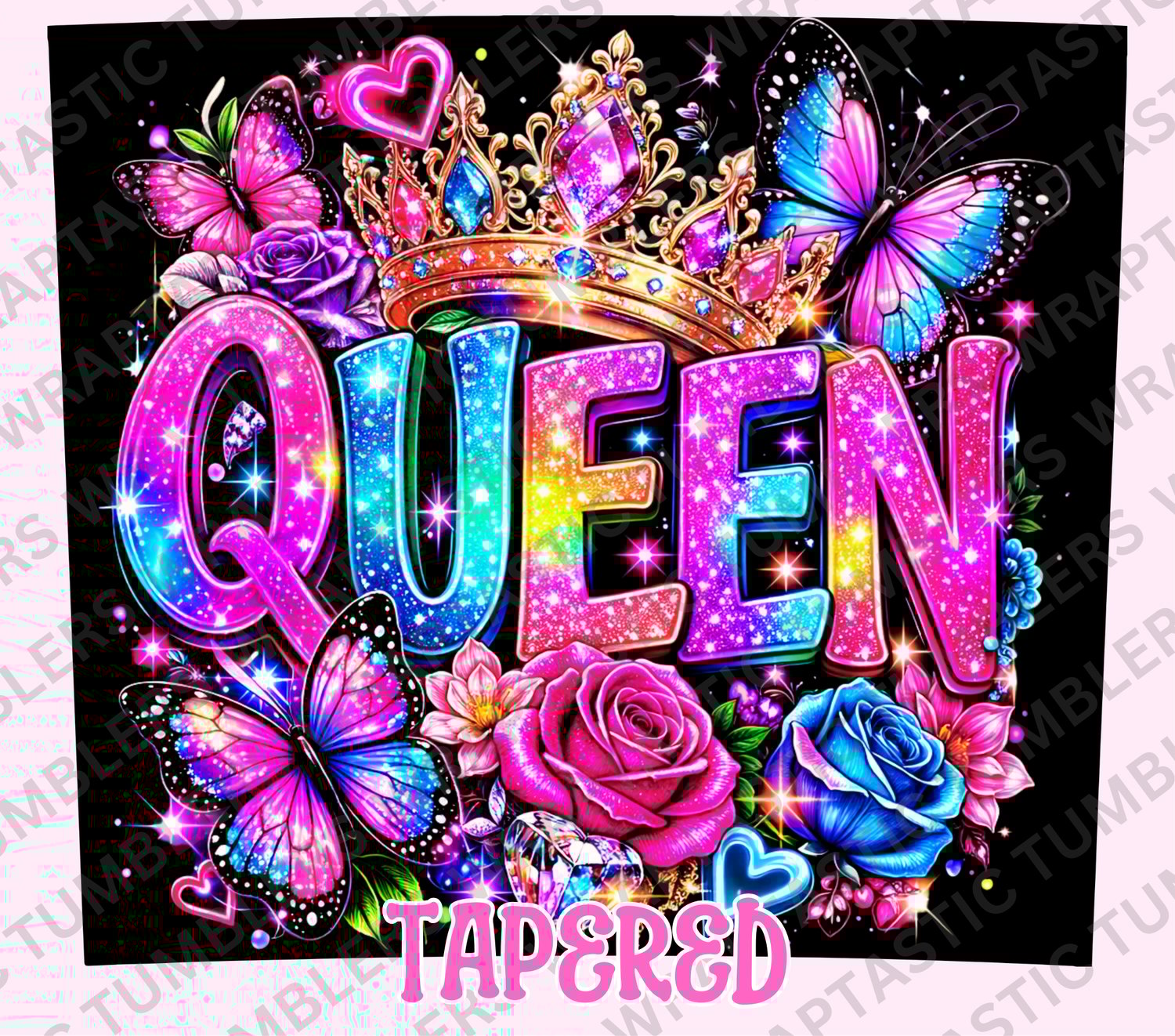 Queen Png Tumbler Wrap, Inspirational Positive Affirmations Empowerment Queen Design, Glitter Crown Butterflies Roses (Digital Download)