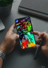 This woman likes to splash on the canvas. Sometimes she also works with digital tools.