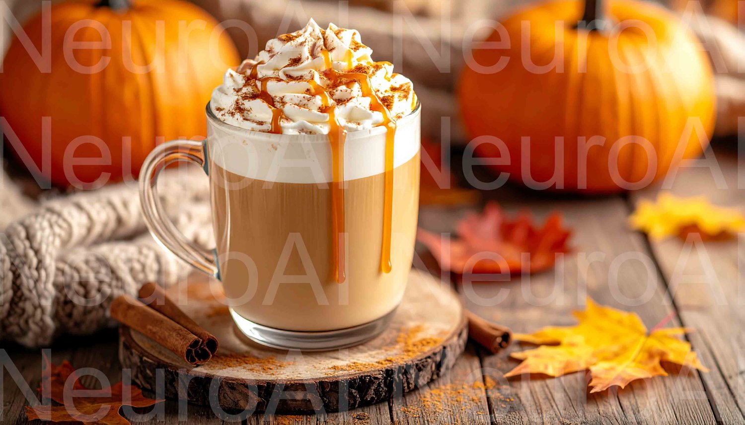 Cozy autumn coffee with whipped cream and caramel drizzle