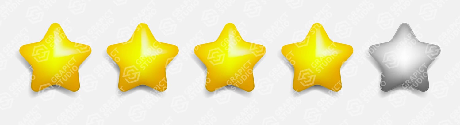 Three dimensional five star rating, 3d realistic vector