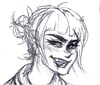 Same as a simple sketch with no coloring, but with a sketched background. Shows head to mid torso.