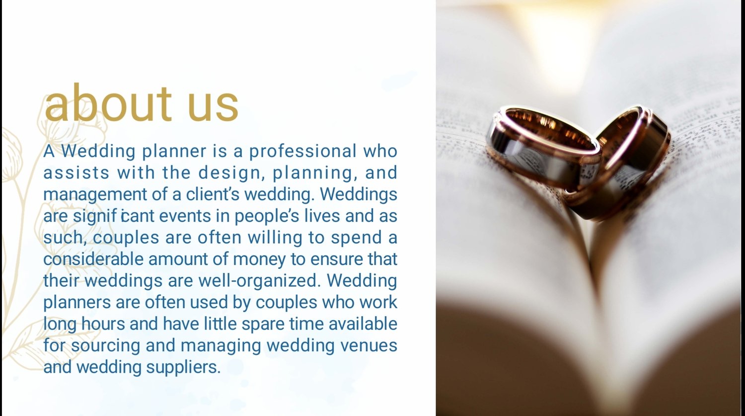 Create a beautiful and professional wedding presentation with this modern Wedding Planner Template.