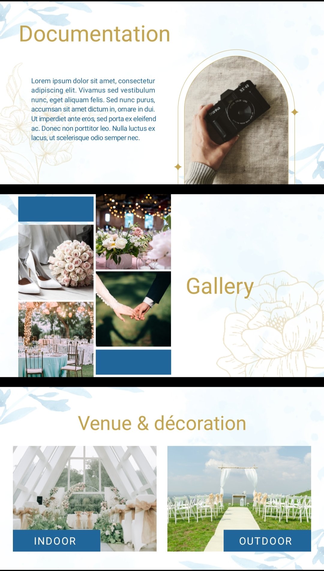 Perfect for wedding planners, event planners, photographers or designers who want to present their services in a stylish way.