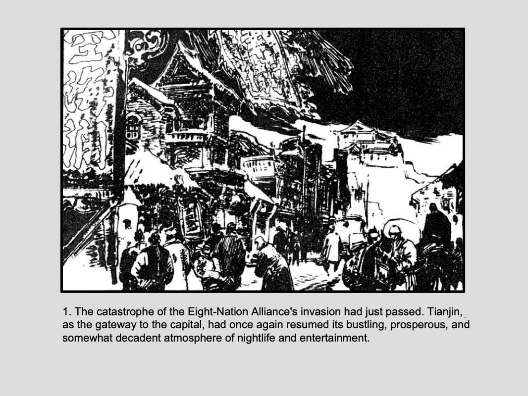 1. The catastrophe of the Eight-Nation Alliance's invasion had just passed. Tianjin, as the gateway to the capital, had once again resumed its bustling, prosperous, and somewhat decadent atmosphere of nightlife and entertainment.
