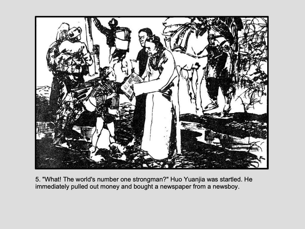 5. "What! The world's number one strongman?" Huo Yuanjia was startled. He immediately pulled out money and bought a newspaper from a newsboy.
