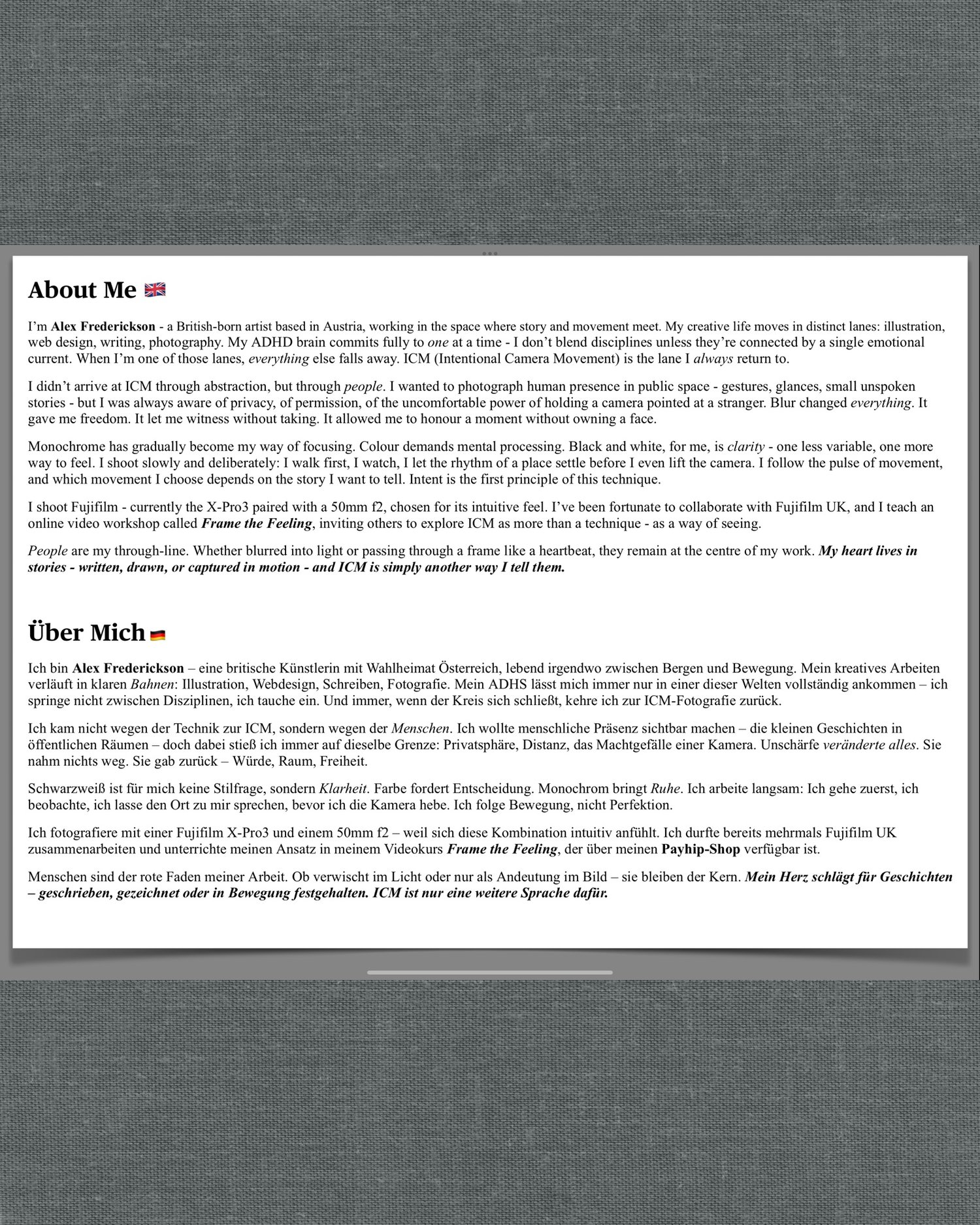 Ein zweisprachiges digitales Fotobuch mit Texten von Alex Frederickson