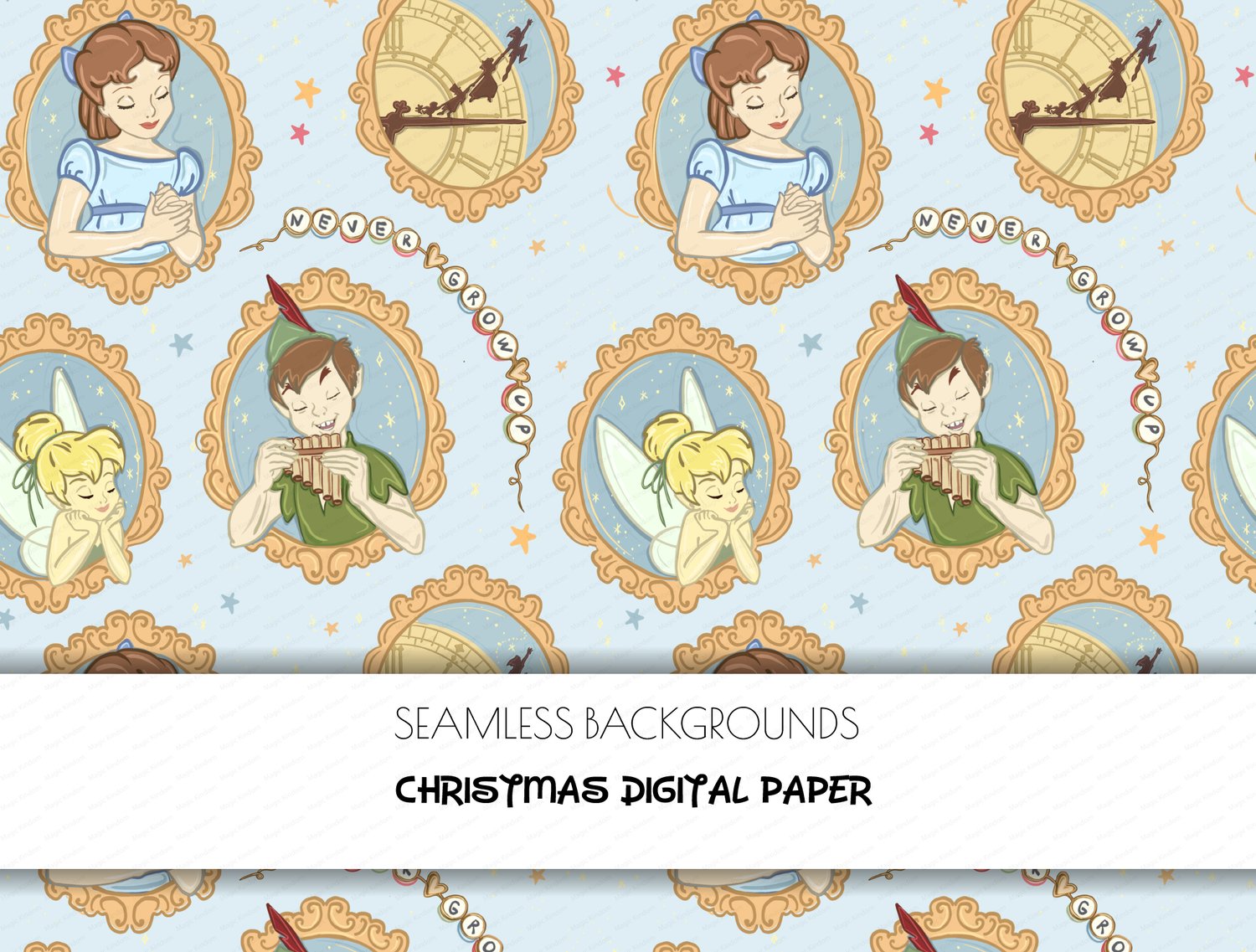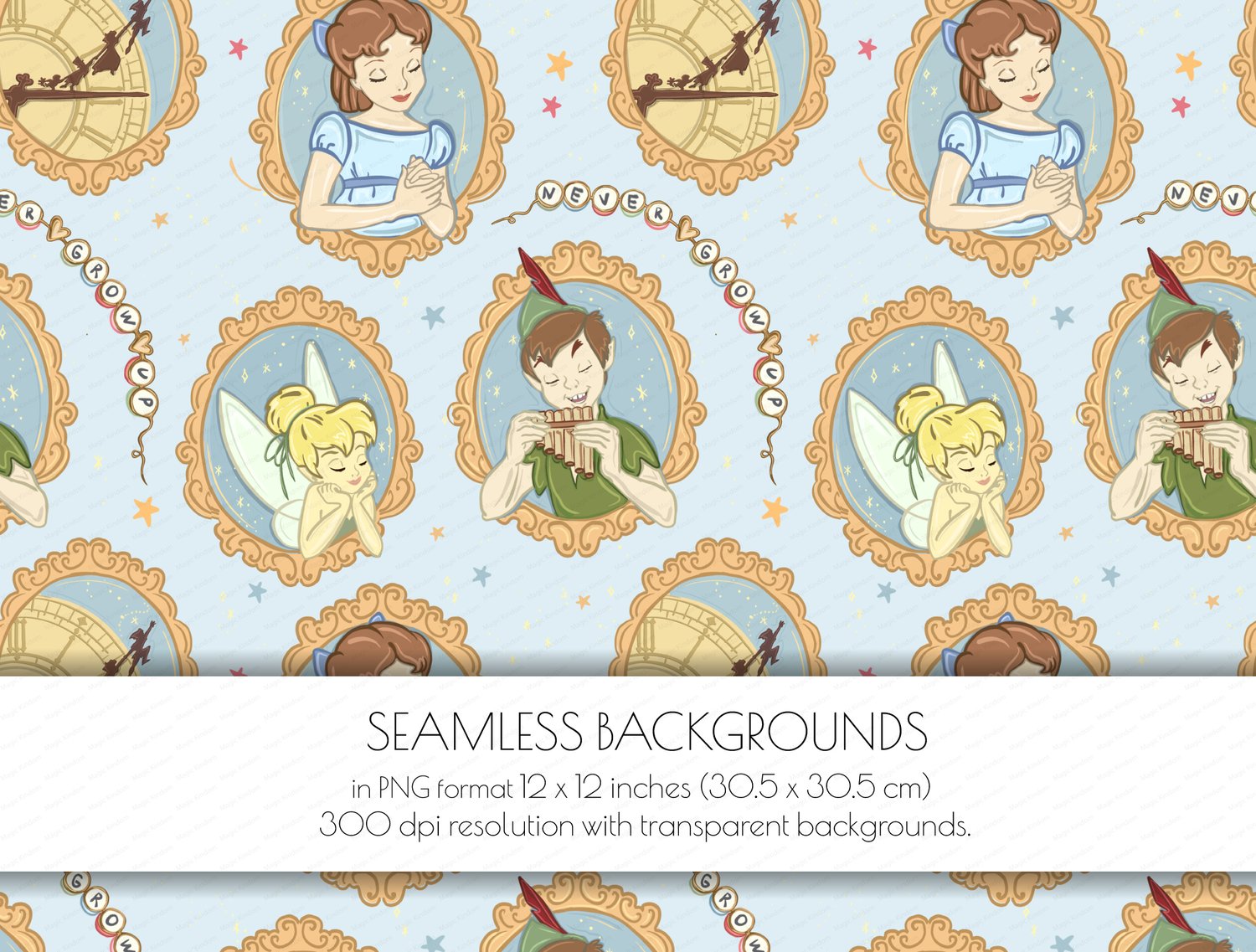 1 Peter Pan, Neverland, Never Grow Up, Digital Paper PNG format 12 x 12 inches (30.5 x 30.5 cm) 300 dpi resolution .