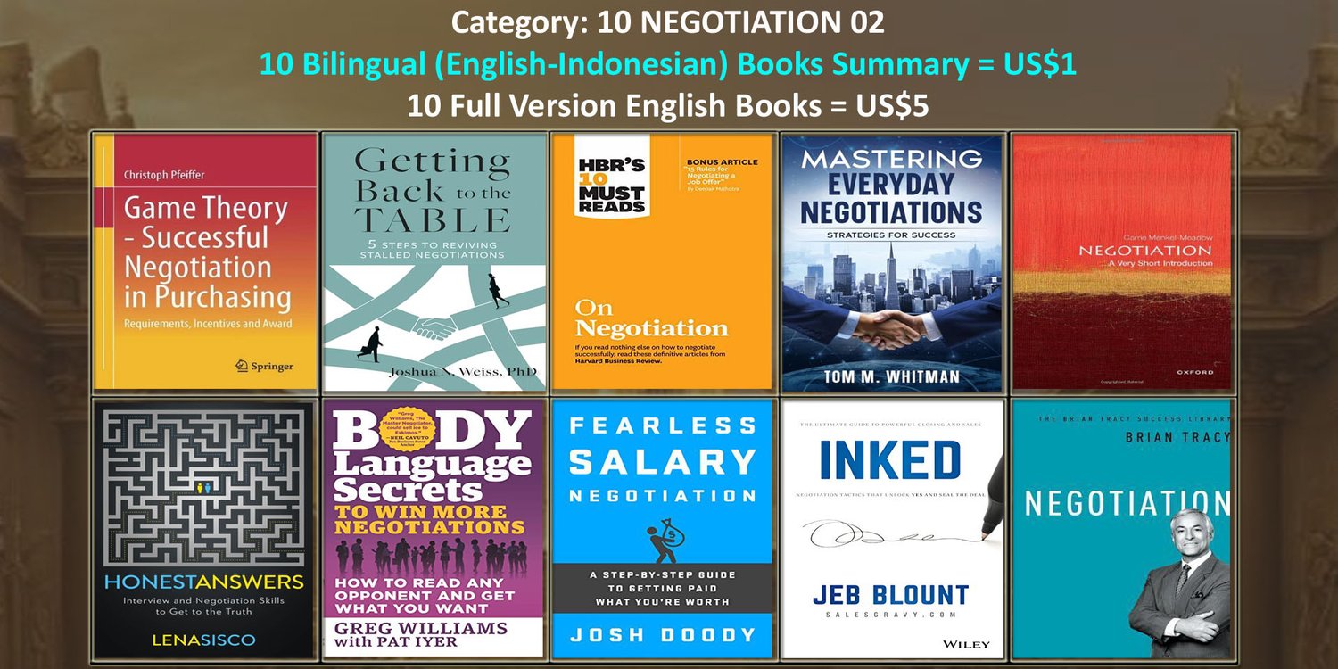 · Untuk 10 buku summary dalam 2 bahasa (English-Indonesian), hanya perlu 1 dollar saja, atau Rp.16.000,-