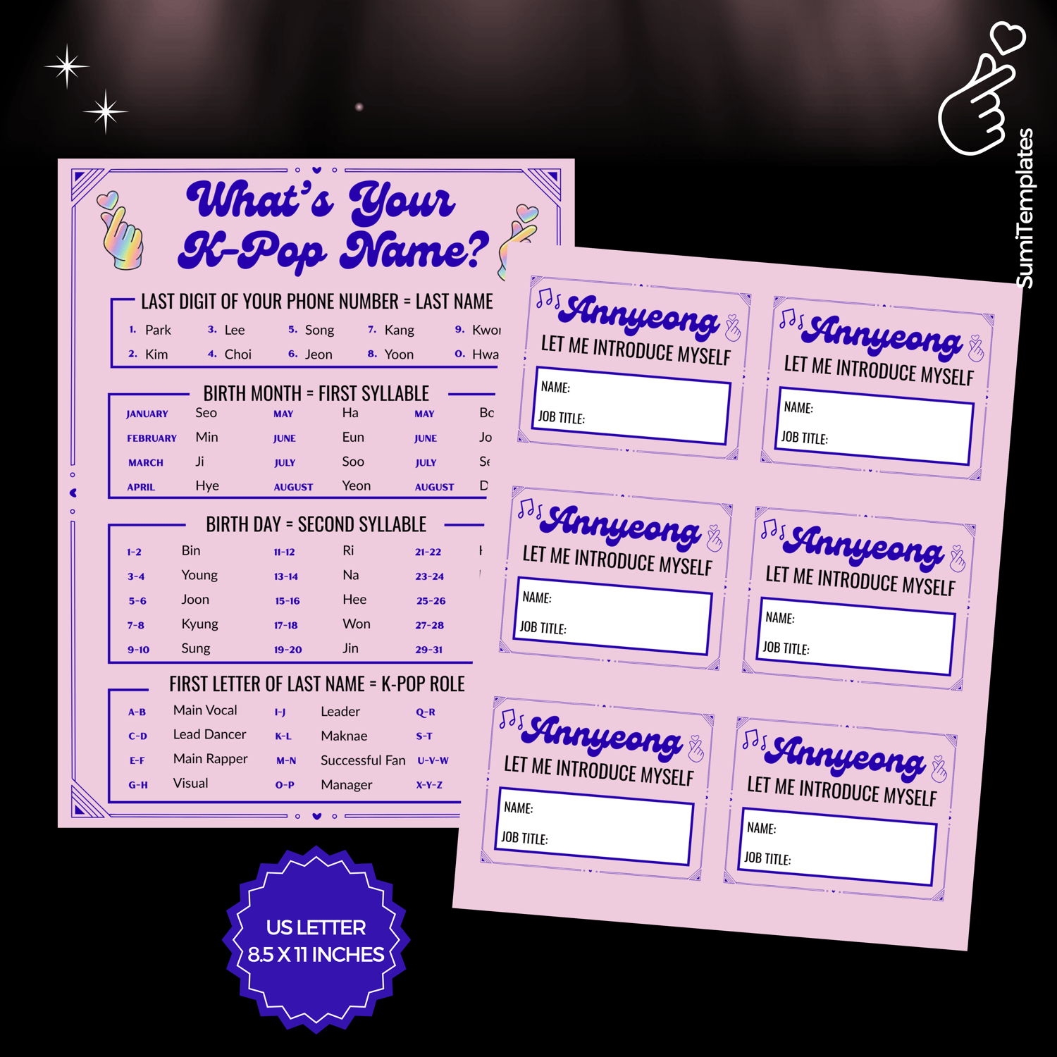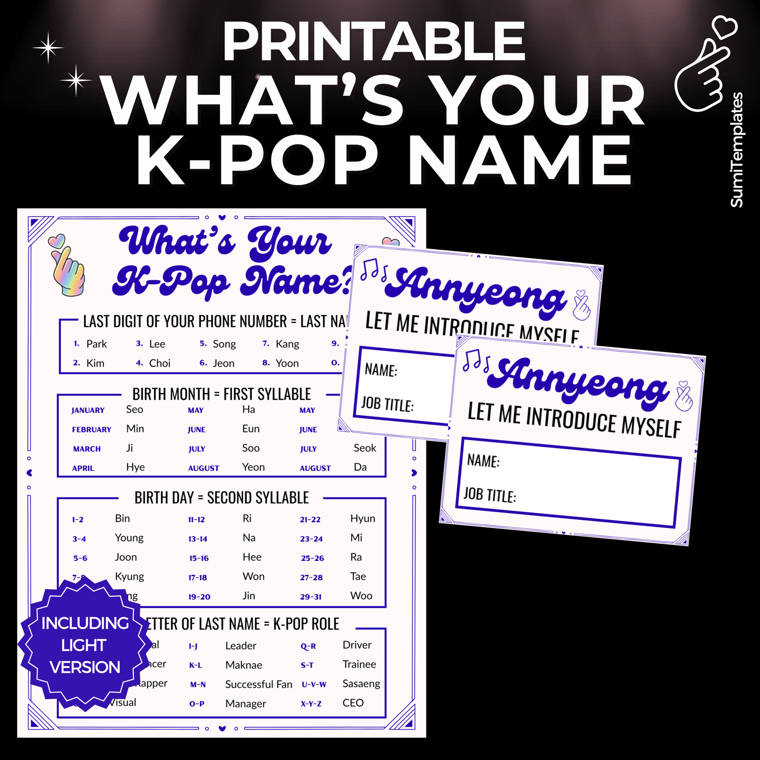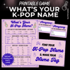 * PDF file with Printable What's your K-Pop Name Game including name tags - in pink and white version. Jump right in and start playing!
