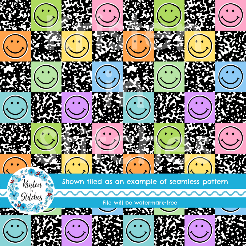 Pastel Rainbow Happy Face Composition Notebook Seamless Pattern, Checkerboard