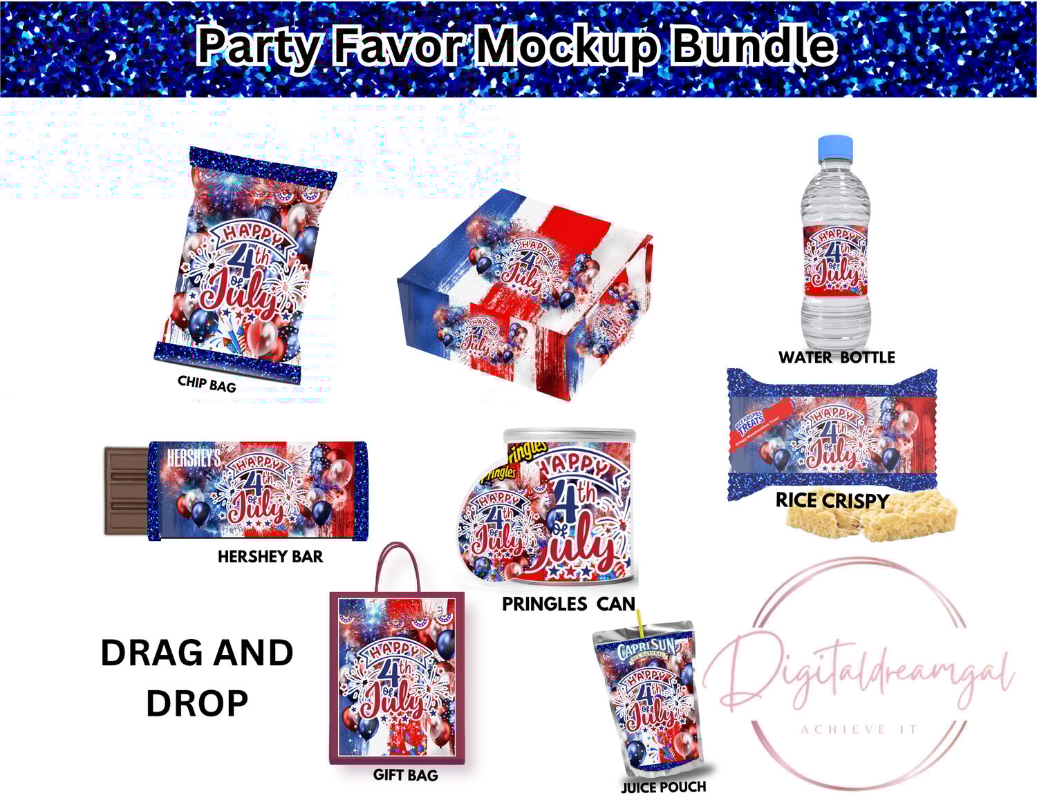 Get ready to transform your Independence Day party with this festive editable party favor bundle β perfect for hosts, DIY crafters, and party planners who love creating memorable moments with ease! As a special treat, youβll get the 4th of July Chip Bag Template FREE from this bundle, right inside your download!